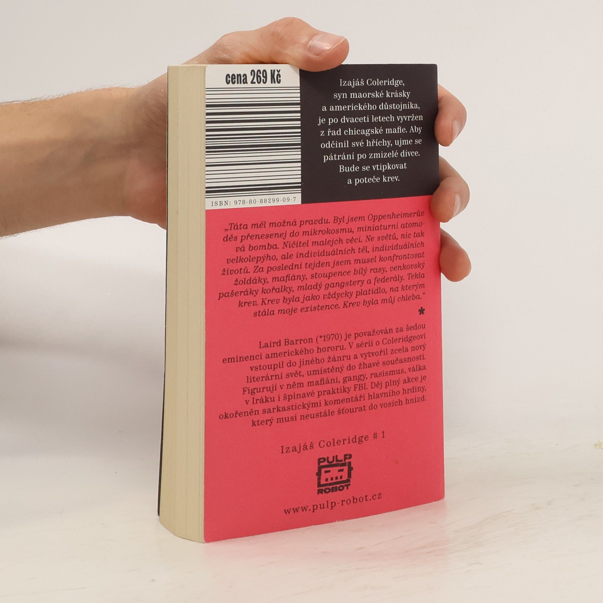 Několika cenami ověnčený Laird Barron (*1970), považovaný za šedou eminenci amerického hororu, tentokrát přichází s drsným thrillerem. Krev je můj chleba je první díl nové série s hrdinou Izajášem Coleridgem, synem maorské krásky a amerického důstojníka, který je po dvaceti letech mezi chicagskou mafií vržen do pátrání po mladé dívce. Pokud jste si oblíbili Nesbøho hrdinu Harryho Holea, nepochybně si zamilujete i svérázného Izajáše. Barron vytvořil v této sérii zcela nový literární svět, umístěný do žhavé současnosti. Děj, okořeněný sarkastickými komentáři hlavního hrdiny, který musí neustále šťourat do vosích hnízd, je plný akce... a krve.
