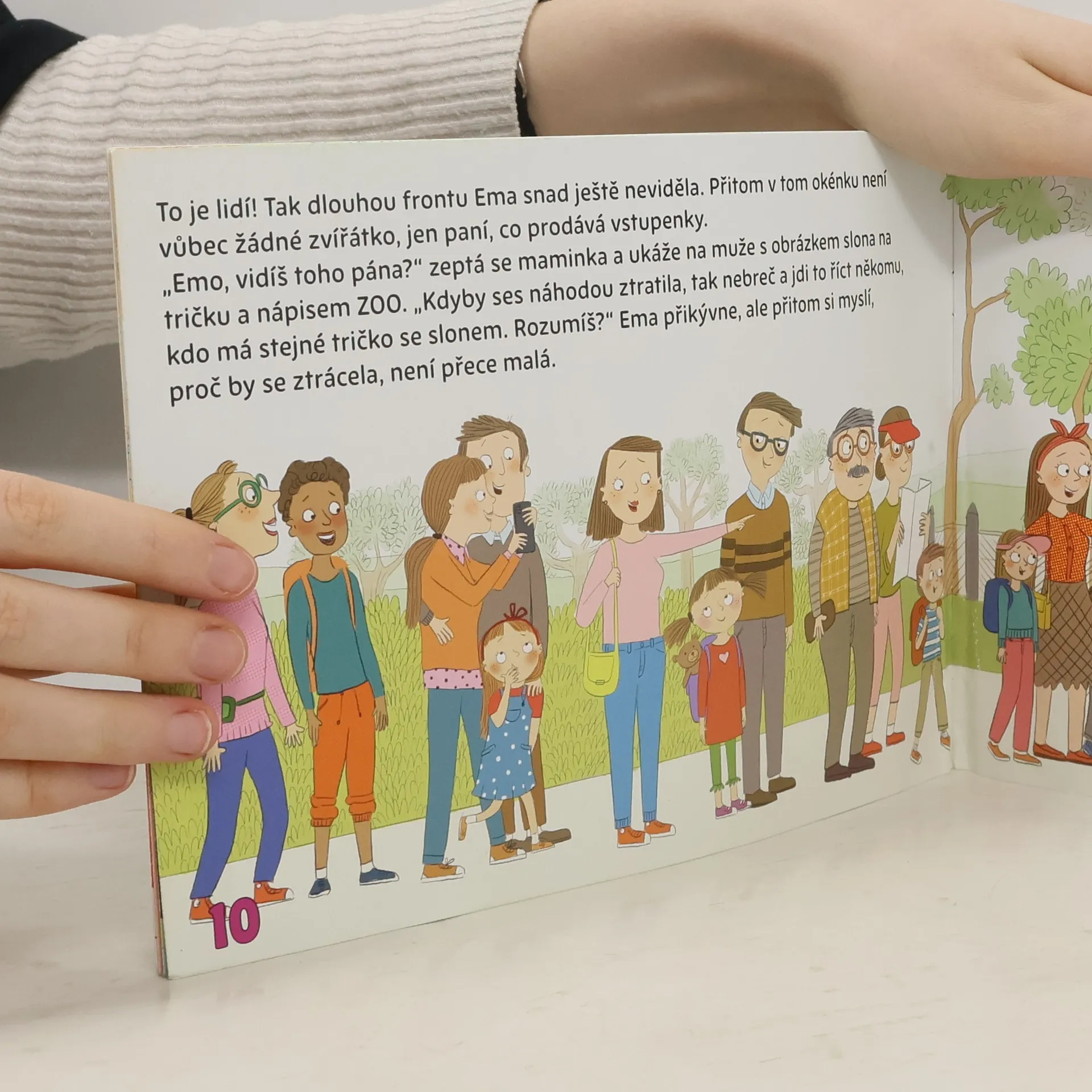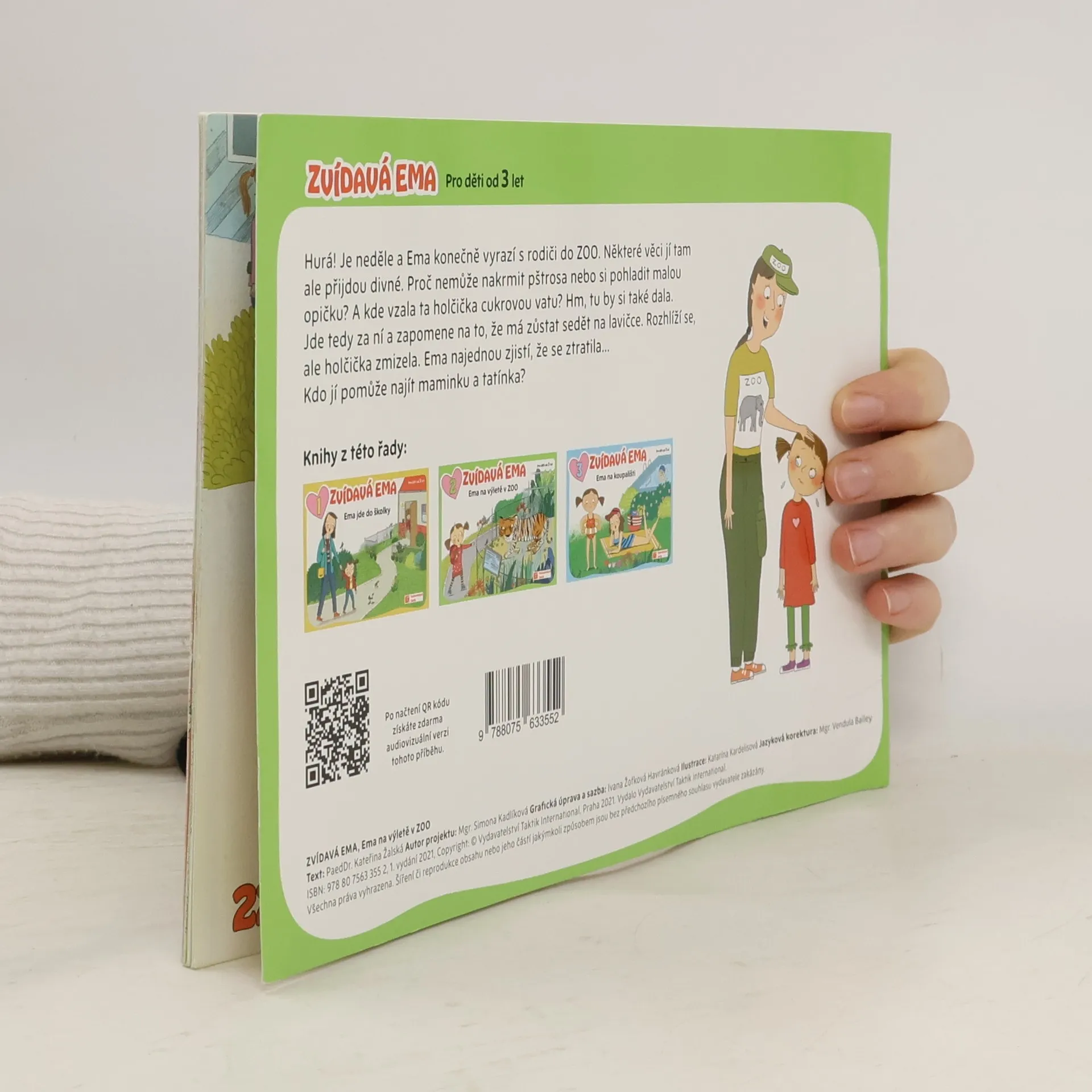 Ilustrovaná knížka seznámí děti s příběhy z každodenního života, nenásilnou formou je naučí, jak se chovat v určitých situacích. Knížka je pomůckou pro rodiče i pedagogy. Ema se konečně dočkala a dnes jede s rodiči do ZOO. Už se strašně těší na zvířátka. Hlavně chce vidět opice, které má nejraději. U ohrady se pštrosy se Ema dozví, proč jim nemůže dát dobrotu z batůžku. Tatínek jí vysvětlí, proč si nemůže pohladit opičí mládě, i když je tak roztomilé.