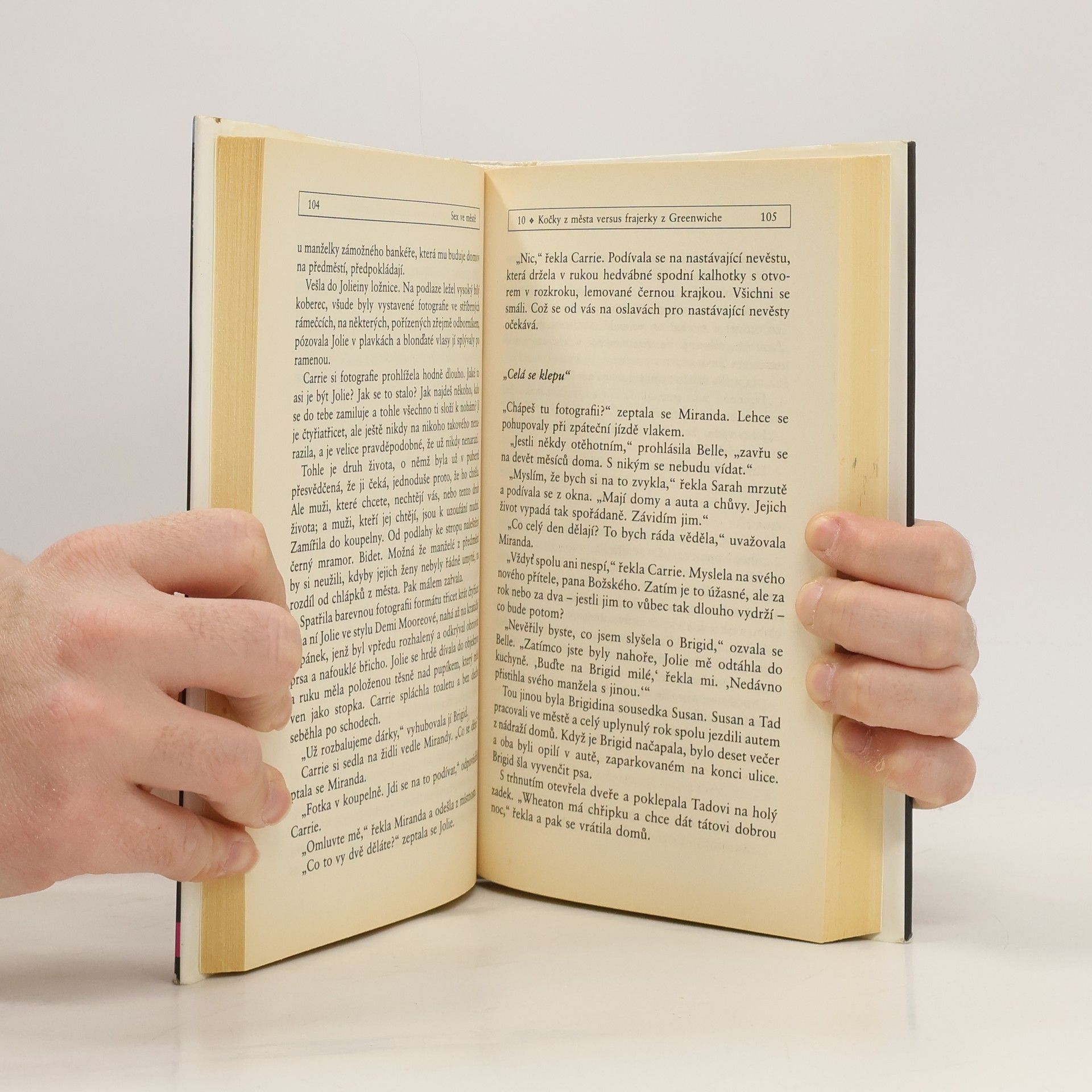 Kdo z nás by alespoň jednou nechtěl nahlédnout do světa bohatých a slavných, podívat se do jejich přepychových bungalovů a – jen si to přiznejme! – jedním okem nakouknout do ložnice. Copak se tam asi tak odehrává? Divoké, bujné milování jako z erotického časopisu, anebo snad stejná manželská nuda jako kdekoli jinde? Candace Bushnellová pro nás tu pomyslnou špehýrku otevírá a pohled na milostná kolbiště svých bližních ještě svým zábavným a ironickým způsobem komentuje. Se svým příznačným humorem nám představí „mladé a krásné“ lidi, kteří táhnou z večírků do barů a klubů, v létě jezdí do přepychových přímořských letovisek a v zimě na lyže. Carrie, prototyp ztrápené mladé spisovatelky, hledá lásku výhradně na nesprávných místech, a ne vždy vychází všechno podle jejích představ. Její přítelkyně Samantha, Miranda a Charlotte jsou také nadšenými lovkyněmi mužů a vždy jsou ochotny posloužit velice konkrétními radami. Fotogenické krasavice se slepičími mozečky balí kdekoho, neurotické maminy se vychloubají svými otřesnými dětmi a příkladnými manžílky, a všechny dohromady zajímá jen jedno jediné – sex.