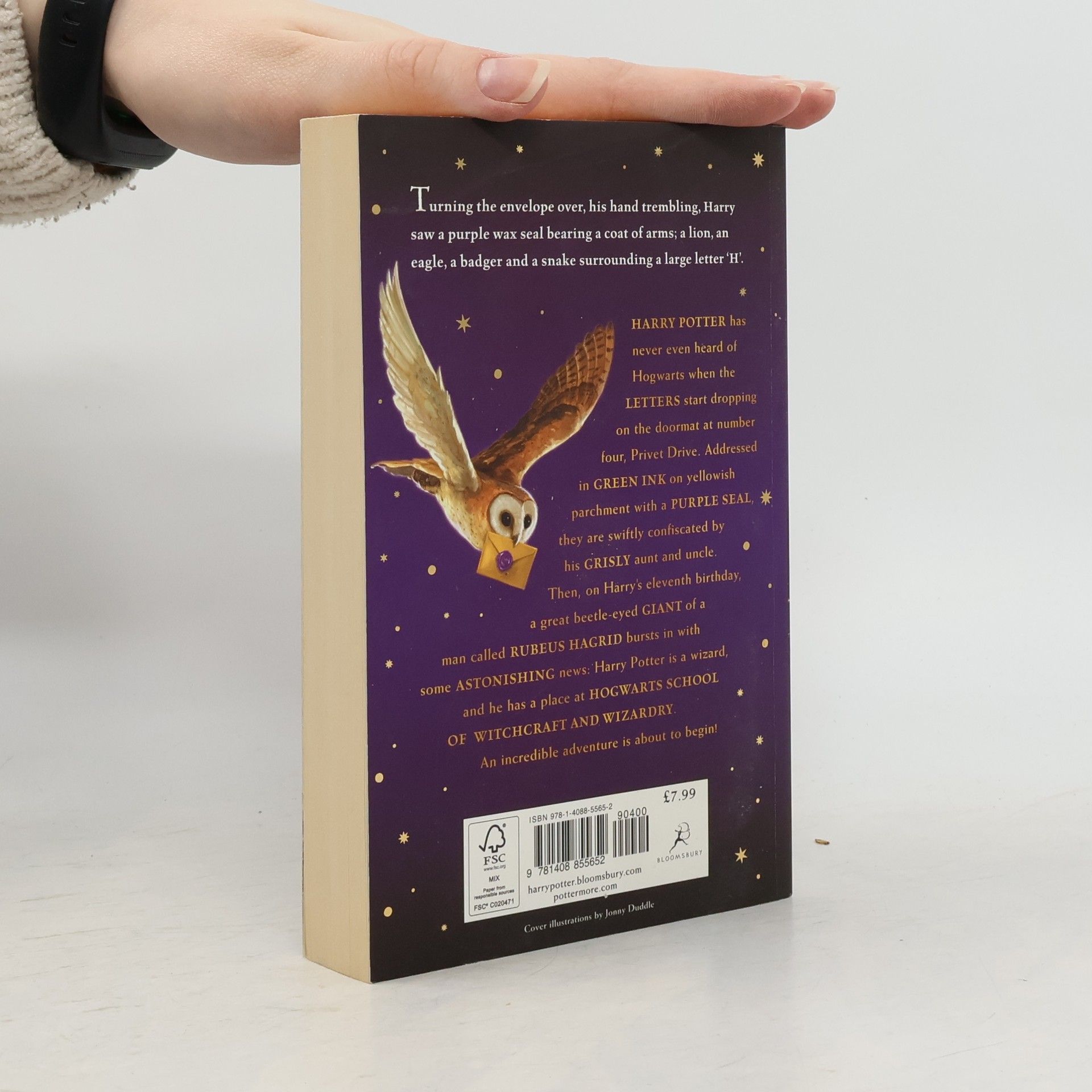 Harry Potter has never even heard of Hogwarts when the letters start dropping on the doormat at number four, Privet Drive. Addressed in green ink on yellowish parchment with a purple seal, they are swiftly confiscated by his grisly aunt and uncle. Then, on Harry's eleventh birthday, a great beetle-eyed giant of a man called Rubeus Hagrid bursts in with some astonishing news: Harry Potter is a wizard, and he has a place at Hogwarts School of Witchcraft and Wizardry. An incredible adventure is about to begin!These new editions of the classic and internationally bestselling, multi-award-winning series feature instantly pick-up-able new jackets by Jonny Duddle, with huge child appeal, to bring Harry Potter to the next generation of readers. It's time to PASS THE MAGIC ON .