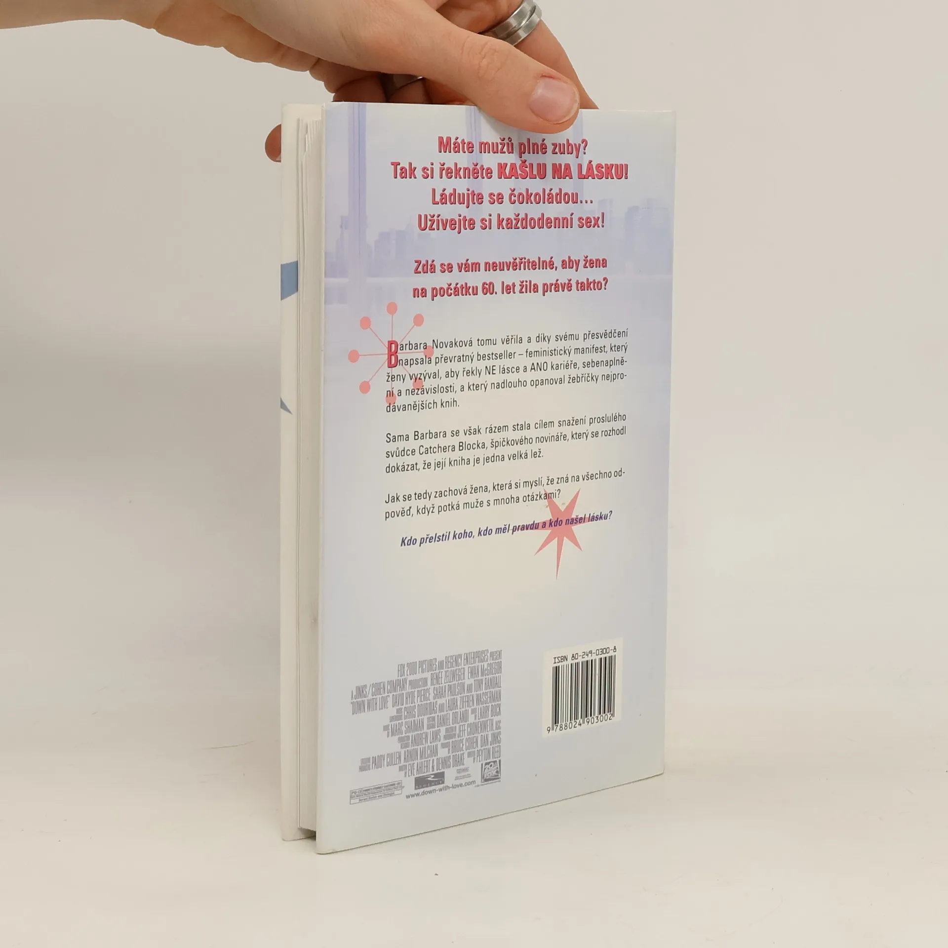 U vlády je prezident Kennedy, národ miluje Show Eda Sullivana a o letech na Měsíc se teprve nesměle šeptá. A přece Amerika zažívá šok. V New Yorku totiž vyšla kniha Barbary Novakové s provokativním názvem Kašlu na lásku. Jak může nějaká žena kašlat na lásku? A přitom si dopřávat sex? Netoužit po tom být oddanou manželkou a matkou? Prahnout jen po kariéře, nezávislosti a seberealizaci? To přece nemůže být jen tak! O tom je skálopevně přesvědčen mimo jiné i miláček žen, miláček mužů, miláček města a nositel nejprestižnější novinářské ceny Catcher Block. A to by bylo, aby všem nedokázal, že Barbara Novaková je žena jako každá jiná. Je to okouzlující příběh. Natolik, že zlákal i Hollywood a dostal se na filmová plátna. Natolik, že si zasloužil, aby o něm byla vydána i tato kniha, v níž se dozvíte, jak to všechno bylo. Příběh knihy, jež inspirovala vznik lásky, která inspirovala film a ten zase inspiroval tuto knihu!... celý text