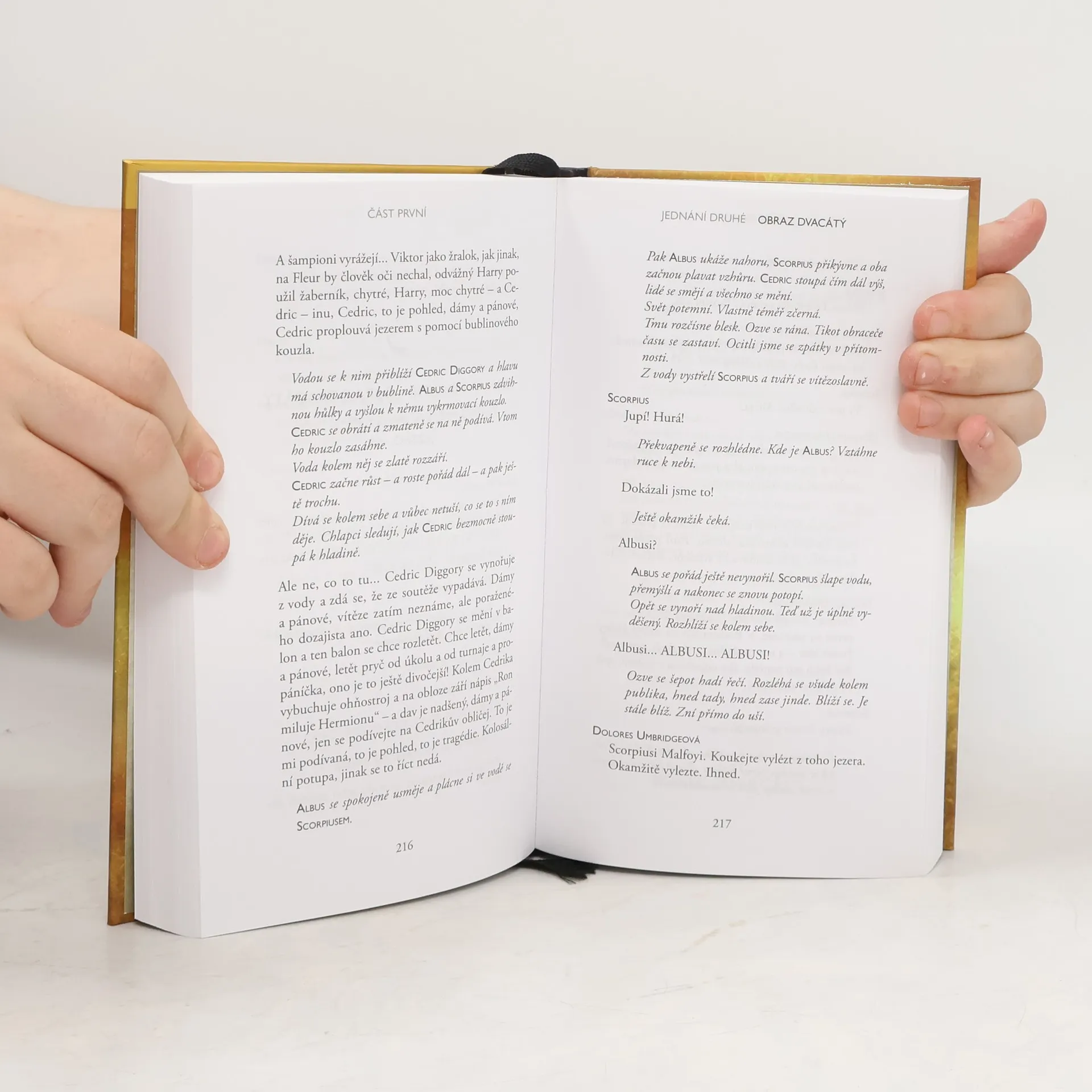 Speciální vydání pracovního scénáře. Harry Potter to nikdy neměl snadné a teď, jako přepracovaný zaměstnanec Ministerstva kouzel, manžel a otec tří školáků, to má ještě těžší. Potýká se s minulostí, která nechce zůstat tam, kam patří, a jeho nejmladší syn Albus se mezitím musí prát s tíhou rodinného dědictví, o které nikdy nestál. Minulost a současnost se čím dál hrozivěji prolínají a otec i syn zjišťují nepříjemnou pravdu: temnota někdy vyvěrá z nečekaných míst. Divadelní hru Harry Potter a prokleté dítě na námět J.K. Rowlingové, Johna Tiffanyho a Jacka Thornea napsal Jack Thorne. Je osmým příběhem ze série o Harrym Potterovi a zároveň prvním, který se oficiálně dočkal divadelního zpracování.