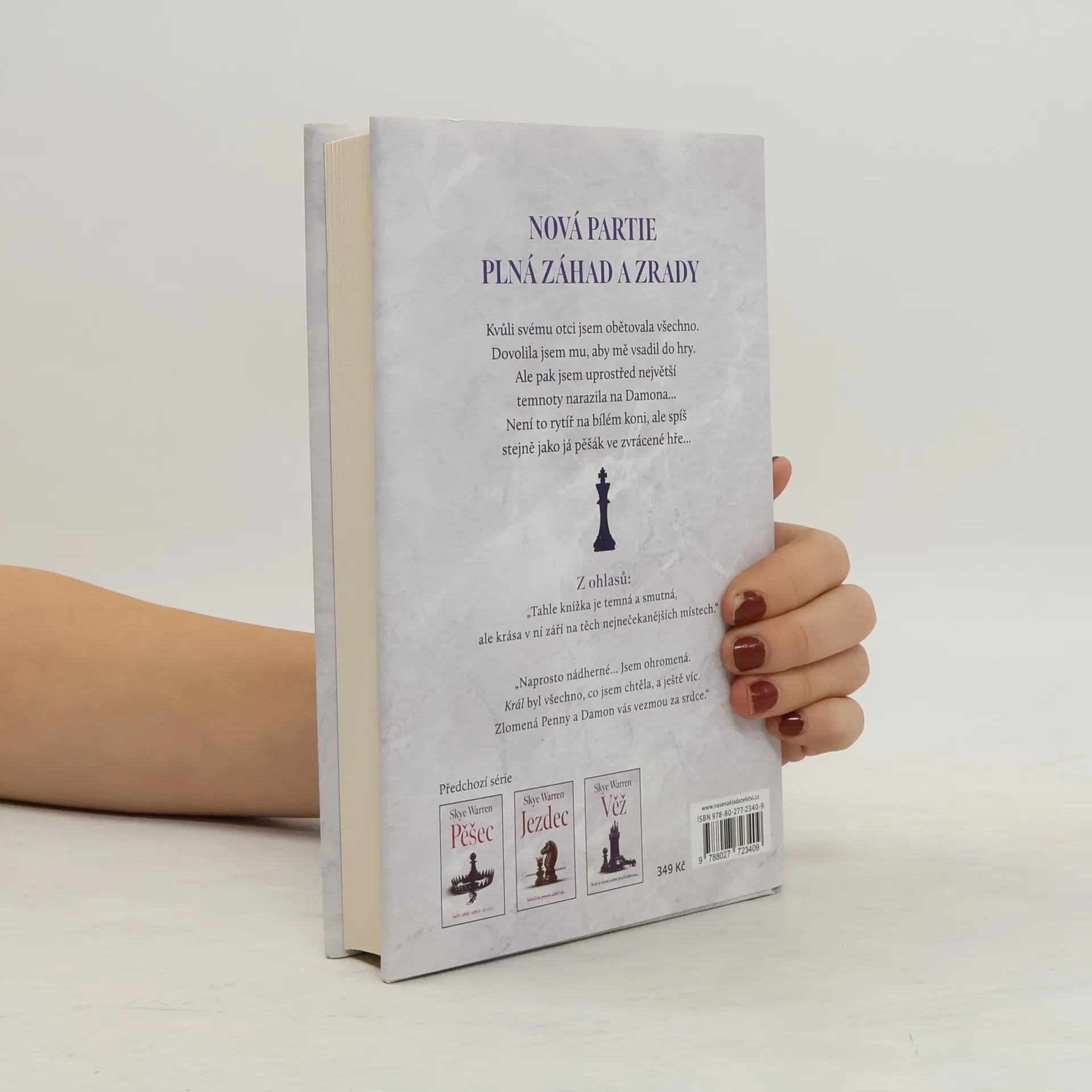 Nejvyšší sázka. Můj otec noc co noc hraje, čím dál víc propadá své závislosti a dluhům. Když narazí na dno, vsadí to poslední, co mu zbývá – svou dceru. Jsem jeho sázka v nelegální pokerové hře. Po sametem potaženém stole krouží tolik nebezpečí, ale já se chvěju jen z jediného muže. Princezna z přívěsu a syn krále podsvětí. Nepatříme k sobě, ale jsme zapletení do zvrácené hry. Podívá se na mě s temným příslibem v očích. A když vyloží karty, vím, že jsem prohrála víc než jen svoje tělo. Prohrála jsem úplně všechno. Příběh Damona a Penny je temný a syrový. Každý po svém bojuje s děsivou minulostí a velkým věkovým rozdílem. Král je první kniha v duologii Masterpiece – příběh o riskování srdce a nalezení sebe sama. Jedná se o nový příběh ze světa trilogie bestsellerů USA Today (Koncovka), který je možné číst samostatně.