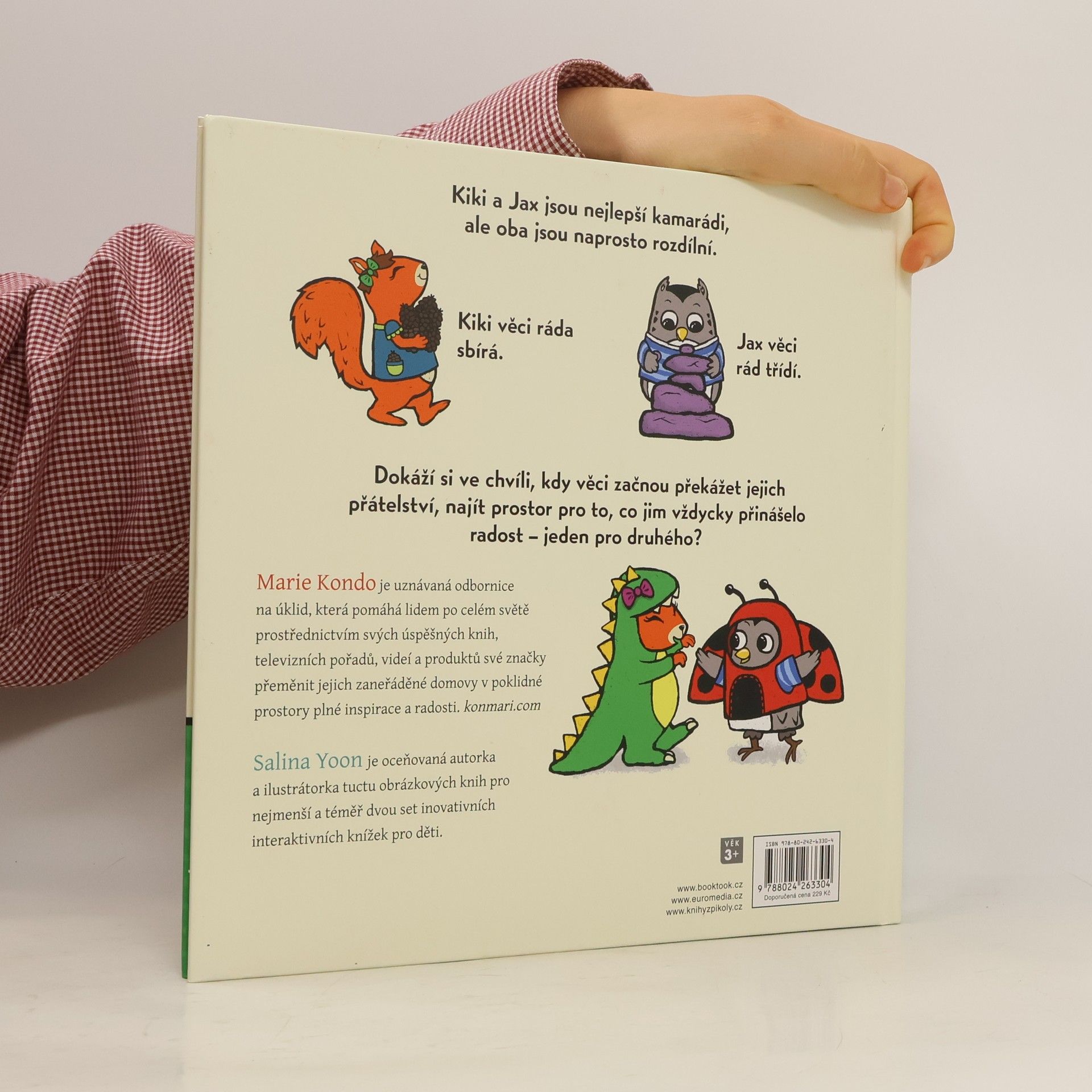 Kiki a Jax jsou nejlepší kamarádi, ale oba jsou naprosto rozdílní. Kiki věci ráda sbírá. Jax věci rád třídí. Dokáží si ve chvíli, kdy věci začnou překážet jejich přátelství, najít prostor pro to, co jim vždycky přinášelo radost – jeden pro druhého? Kniha je určena dětem od 3 let. Od autorky bestselleru Zázračný úklid – Pořádek jednou provždy.