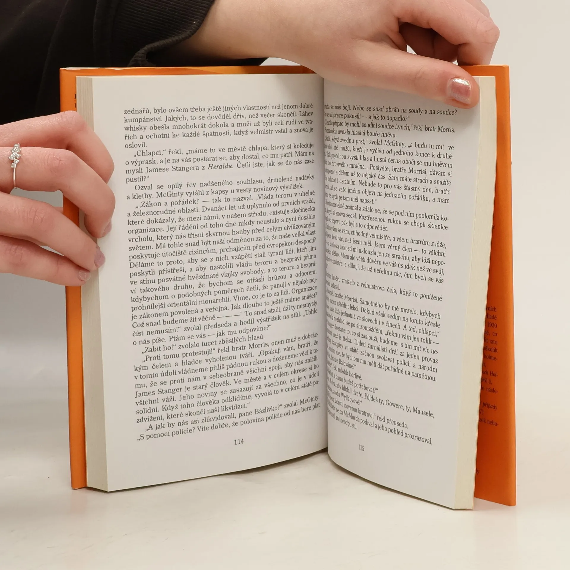 Čtvrtý román Sira Arthura Conana Doyla je zajímavý už svou dvojdílnou výstavbou. Holmes v polovině příběhu není hrdinou v přímé akci, významnější role připadá spíše doktoru Watsonovi jako kronikáři, který věrně zaznamenává vyprávění o pohnutých osudech tajného Pinkertonova agenta, jenž se s nasazením všech sil potýká s nepřáteli v drsném prostředí hornického městečka, ovládaného zločinným spolčením.