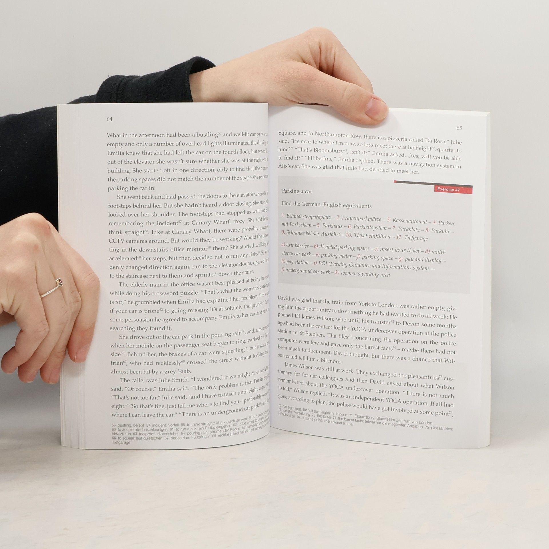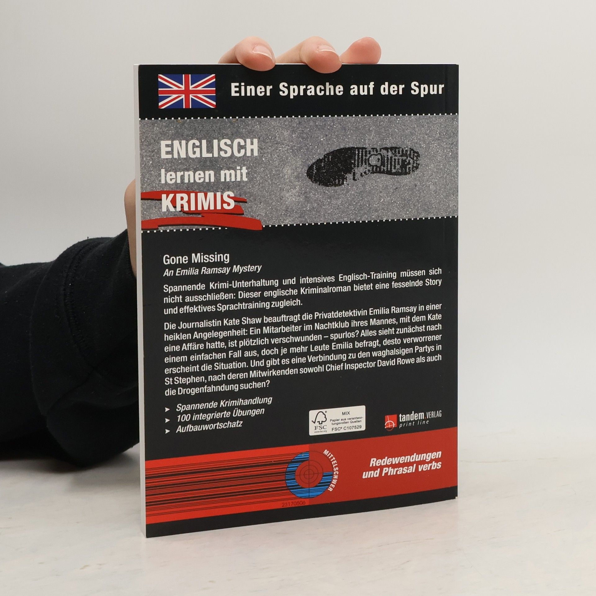 Einer Sprache auf der Spur: Englisch lernen mit Krimis Diese Reihe englischsprachiger Kriminalromane bietet fesselnde Storys und intensives Englisch-Training zugleich. Im Laufe der Handlung sind ca. 100 Lernübungen eingestreut, die der Leser zwischendurch bearbeiten kann. Auf diese Weise wird das Gelesene vertieft und der Lernfortschritt überprüft. Gone Missing: Die Journalistin Kate Shawbeauftragt die Privatdetektivin Emilia Ramsay in einer heiklen Angelegenheit: Ein Mitarbeiter im Nachtklub ihres Mannes, mit dem Kate eine Affäre hatte, ist plötzlich verschwunden - spurlos? Alles sieht zunächst nach einem einfachen Fall aus, doch je mehr Leute Emilia befragt, desto verworrener erscheint die Situation. Und gibt es eine Verbindung zu den waghalsigen Partys in St Stephen, nach deren Mitwirkenden sowohl Chief Inspector David Rowe als auch die Drogenfahndung suchen? Übungsschwerpunkt: Redewendungen und Phrasal verbs Text- und Übungsniveau: mittelschwer Anspruchsvollere Vokabeln werden am Seitenende übersetzt. Ein Abschlussquiz stellt Fragen zur Handlung. Hier kann der Leser im Selbsttest prüfen, ob er die Handlung verstanden hat. Fremdsprachenkenntnisse auf unterhaltsame Weise verbessern, nach dem Motto: gespannt Krimis lesen – entspannt Englisch lernen.