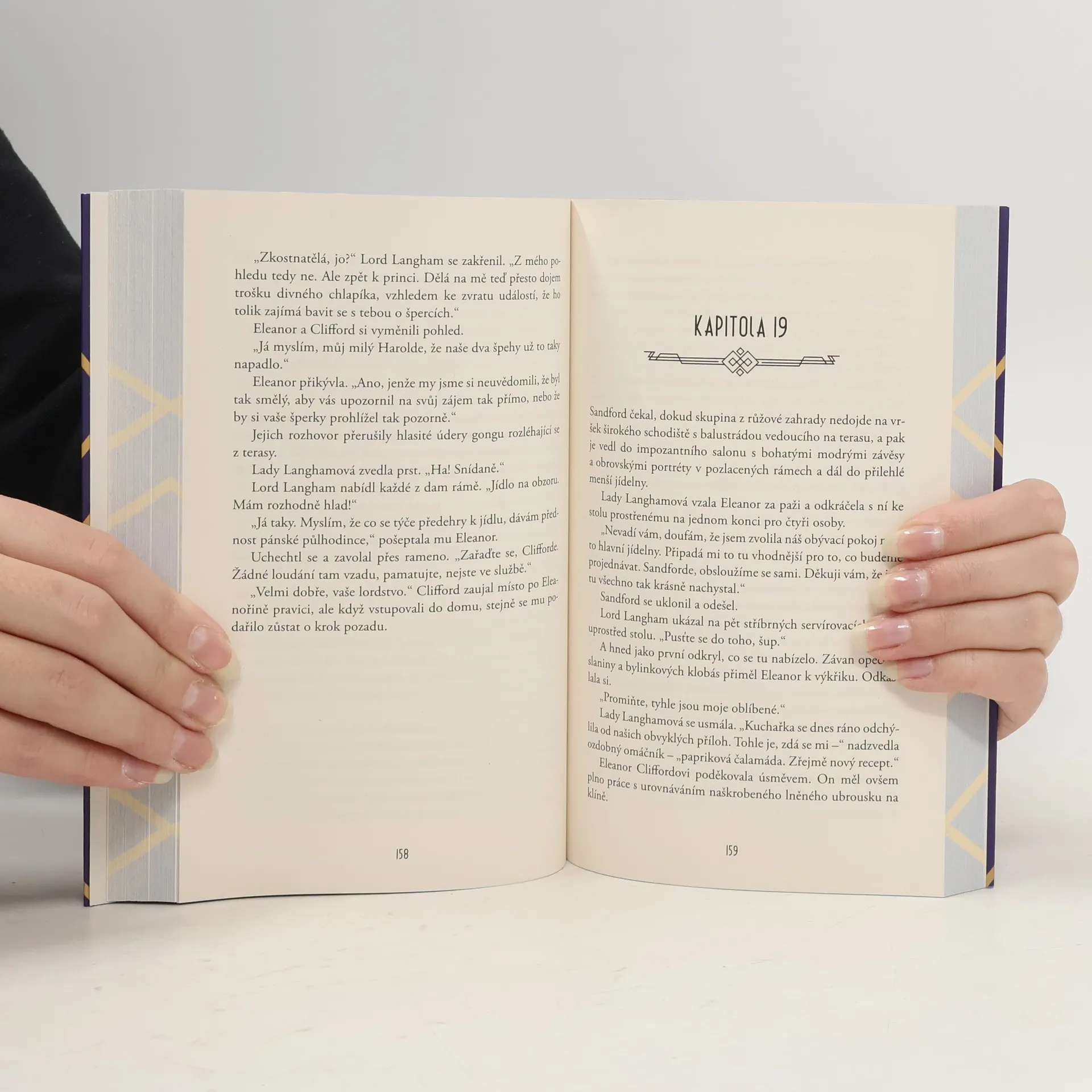Detektivní román anglické autorské dvojice odehrávající se ve 20. letech 20. století. Na scénu opět vstupuje lady Eleanor Swiftová, amatérská vyšetřovatelka. Lady Eleanor Swiftová, pozoruhodná dobrodružka a amatérská vyšetřovatelka, si dává pauzu v pátrání. Má totiž mnohem větší problémy: Není moc zdatná tanečnice, nemá co na sebe a je očekávána na maškarním plese v sídle svého nového nápadníka Lance Langhama. Obklopená hosty v maskách a znepokojující spoustou peří pátrá po nějaké důvěrně známé tváři. Jak stoupá po hlavním schodišti za povědomým párem dlouhých nohou, nepochybuje, že kráčí za mužem svého srdce. Když však otevře dveře, spatří úděsný výjev: Lance stojí nad mrtvým plukovníkem Puddifootem, hrozivě máchá stříbrným svícnem a trezor zeje dokořán. Přesto Eleanor dospěje k přesvědčení, že její milý nic nespáchal, a zatímco je uvězněn, rozhodne se jeho jméno očistit. Nakladatelská anotace. Kráceno.