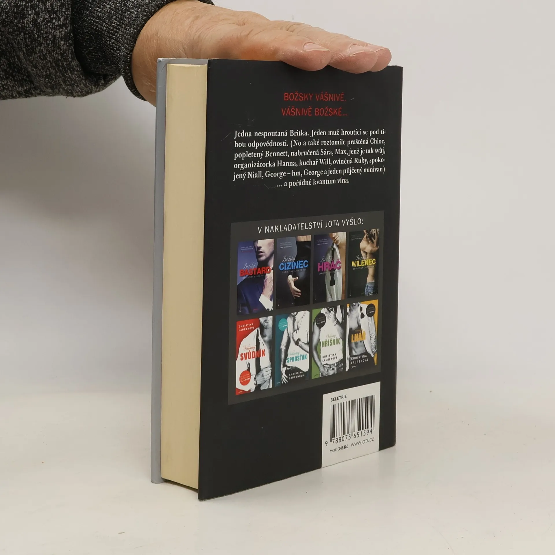 Svérázná Britka a suchar z Bostonu: tak rozdílné povahy jako Pippa a Jensen aby pohledal. Ona je pro každou srandu, on se hroutí pod tíhou odpovědnosti. Řízením osudu se tihle dva setkají na společné dovolené organizované partičkou přátel, kterou věrné čtenářky znají již z předchozích dílů oblíbené série Božský. Putování po vinicích je pro Pippu, jež se právě vzpamatovává z nechutného rozchodu, vítanou příležitostí, jak na všechno zapomenout. Jensen se výletu účastní tak trochu z donucení a jen doufá, že vína bude dost, aby tu nudu přežil. Nuda se však nekoná. Celý výlet se změní v bláznivý sled událostí a zprvu improvizovaný vztah dvou cizích lidí postupně přeroste v hlubokou vášeň. V závěrečném dílu série Božský se uzavírají osudy hrdinů, které si čtenářky Christiny Laurenové tolik oblíbili. I v této knize najdeme vše, čím si autorky své čtenáře tak podmanily: drama i humor, vtipné dialogy, lásku pošetilou i vášnivou a zejména sex, který si hrdinové románu umí náležitě vychutnat.