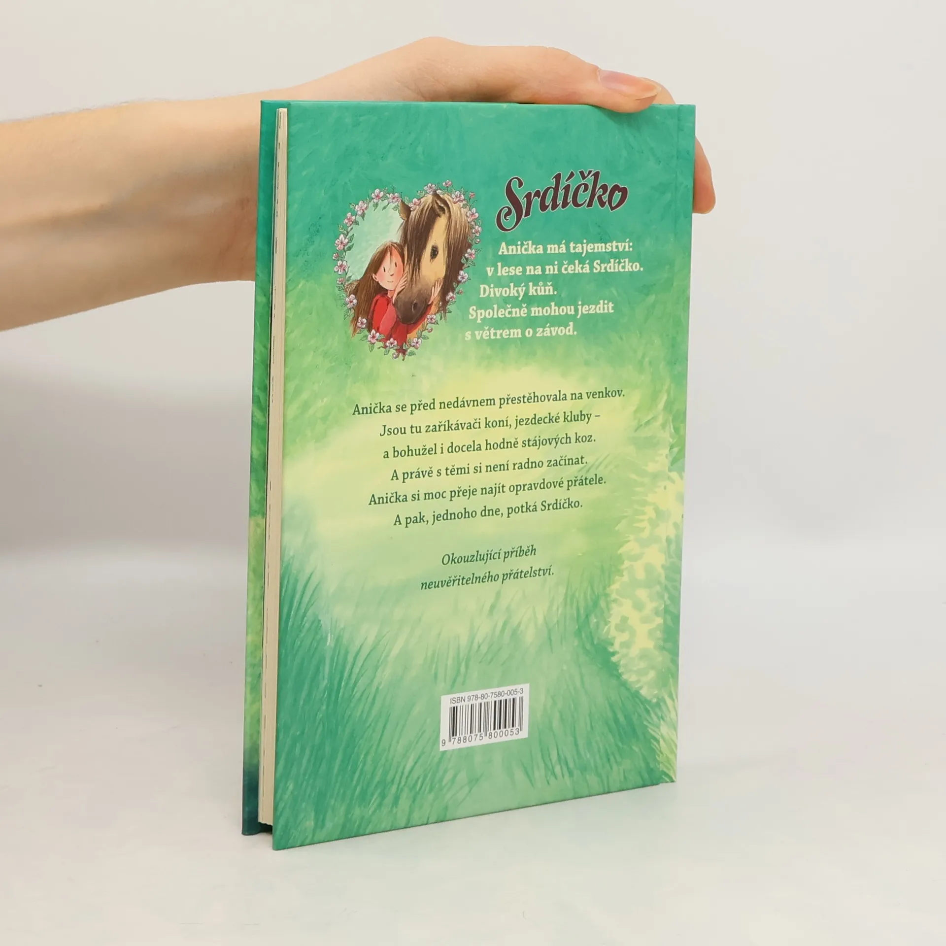 Anička se před nedávnem přestěhovala na venkov. Jsou tu zaříkávači koní, jezdecké kluby - a bohužel i docela hodně stájových koz. A právě s těmi si není radno začínat. Anička si moc přeje najít opravdové přátele. A pak, jednoho dne, potká Srdíčko.