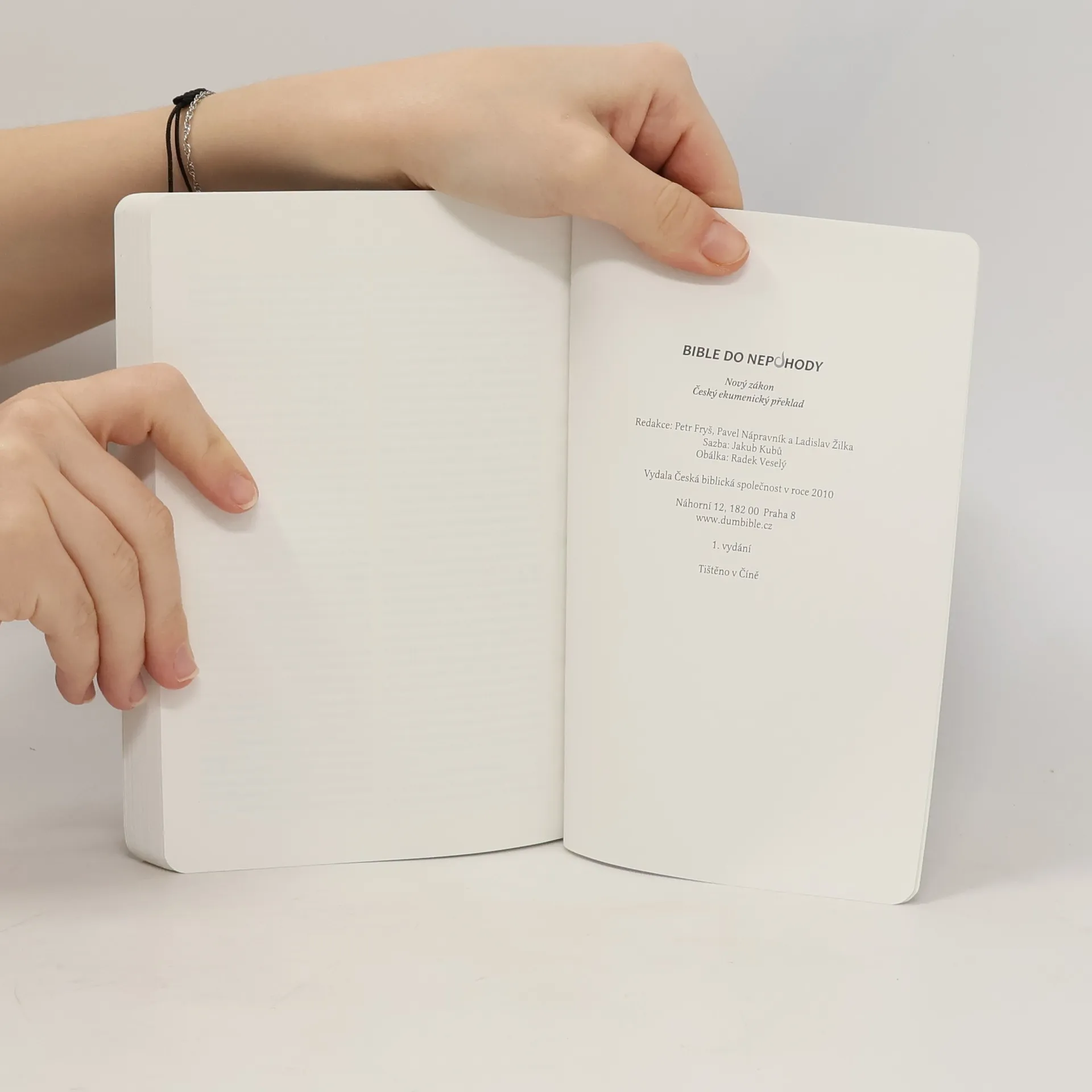 Tato "nepromokavá" Bible (respektive Nový zákon) v ekumenickém překladu je vytištěna na speciálním voděodolném papíře. Je určena všem, kdo rádi táboří a cestují, ocení ji zvláště vodáci a milovníci vodních sportů. Speciální úprava obálky, stran i vazby umožňuje v případě promočení knihu jednoduše a bez následků vysušit. Pevný papír snese i neopatrné zacházení, kterému se ani sebepozornější turista či cestovatel nevyhne. Dodáváno v dárové krabičce.