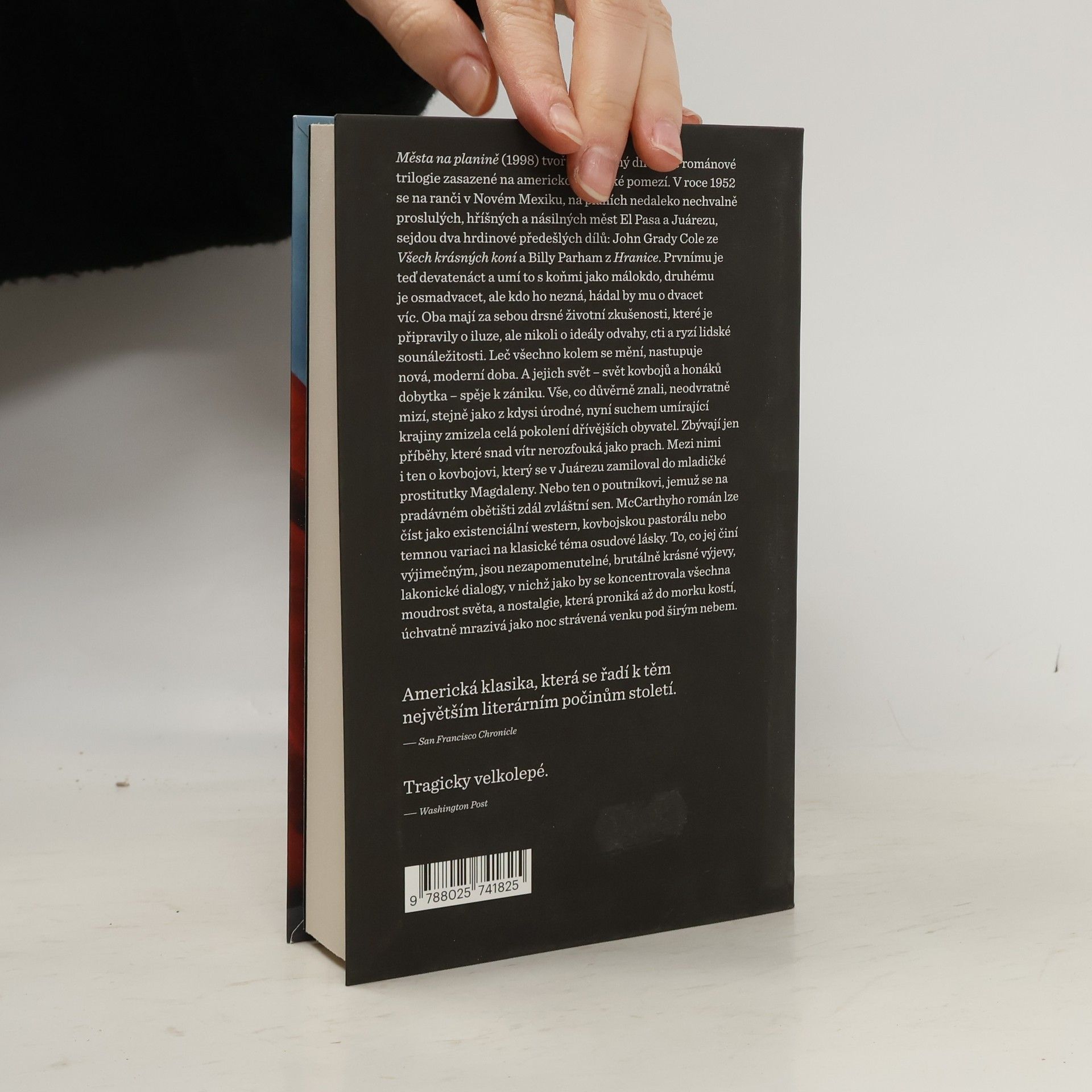 Města na planině (1998) uzavírá volnou románovou trilogii na americko-mexickém pomezí. V roce 1952 se na ranči v Novém Mexiku setkávají dva hrdinové z předchozích dílů: devatenáctiletý John Grady Cole, mistr v práci s koňmi, a osmadvacetiletý Billy Parham, jehož vzhled by mnozí tipovali na staršího muže. Oba prošli drsnými životními zkušenostmi, které je zbavily iluzí, avšak ne ideálů odvahy, cti a lidské sounáležitosti. Jejich svět, plný kovbojů a honáků dobytka, se blíží k zániku, zatímco moderní doba přichází a mění vše kolem. To, co znali, neodvratně mizí, stejně jako generace předchozích obyvatel v nyní suchem sužované krajině. Zůstávají jen příběhy, které by vítr neměl rozfoukat. Mezi nimi je i příběh kovboje, který se zamiloval do mladé prostitutky Magdaleny, a poutníka, jemuž se na pradávném obětišti zdál zvláštní sen. McCarthyho román je možné číst jako existenciální western, kovbojskou pastorálu nebo temnou variaci na téma osudové lásky. Jeho výjimečnost spočívá v nezapomenutelných, brutálně krásných výjevech, lakonických dialozích plných moudrosti a nostalgii, která proniká až do morku kostí, mrazivou jako noc pod širým nebem.