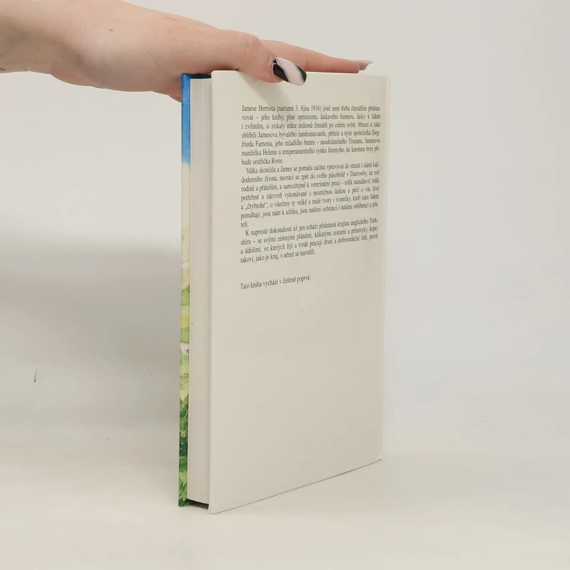Jamese Herriota jistě není třeba čtenářům představovat - jeho knihy plné optimismu, laskavého humoru a lásky k lidem i zvířatům si získaly srdce miliónů čtenářů po celém světě. Mnozí si také oblíbili Jamesova bývalého zaměstnavatele, přítele a nyní společníka Siegfrieda Farnona, jeho mladšího bratra - neodolatelného Tristana, Jamesovu manželku Helenu a temperamentního synka Jimmyho, ke kterému brzy přibude sestřička Rosie. Druhá světová válka skončila a James se pomalu začíná vpravovat do strastí i slastí každodenního života, navrací se zpět do svého působiště v Darrowby, ke své rodině a přátelům, a samozřejmě k veterinární praxi - tolik namáhavé, tolik potřebné a zároveň vykonávané s nesmírnou láskou a péčí o vše živé a "čtyřnohé", o všechny ty velké a malé tvory i tvorečky, kteří nám lidem pomáhají, jsou nám k užitku, jsou našimi ochránci i našimi oblíbenci a přáteli. K naprosté dokonalosti už schází jen překrásná krajina anglického Yorkshiru - se svými zelenými pláněmi, klikatými cestami a průsmyky, kopci a údolími, ve kterých žijí a tvrdě pracují drsní a dobrosrdeční lidé, právě takoví, jako je kraj, v němž se narodili. Vydavatel: Ametyst, Praha.... celý text