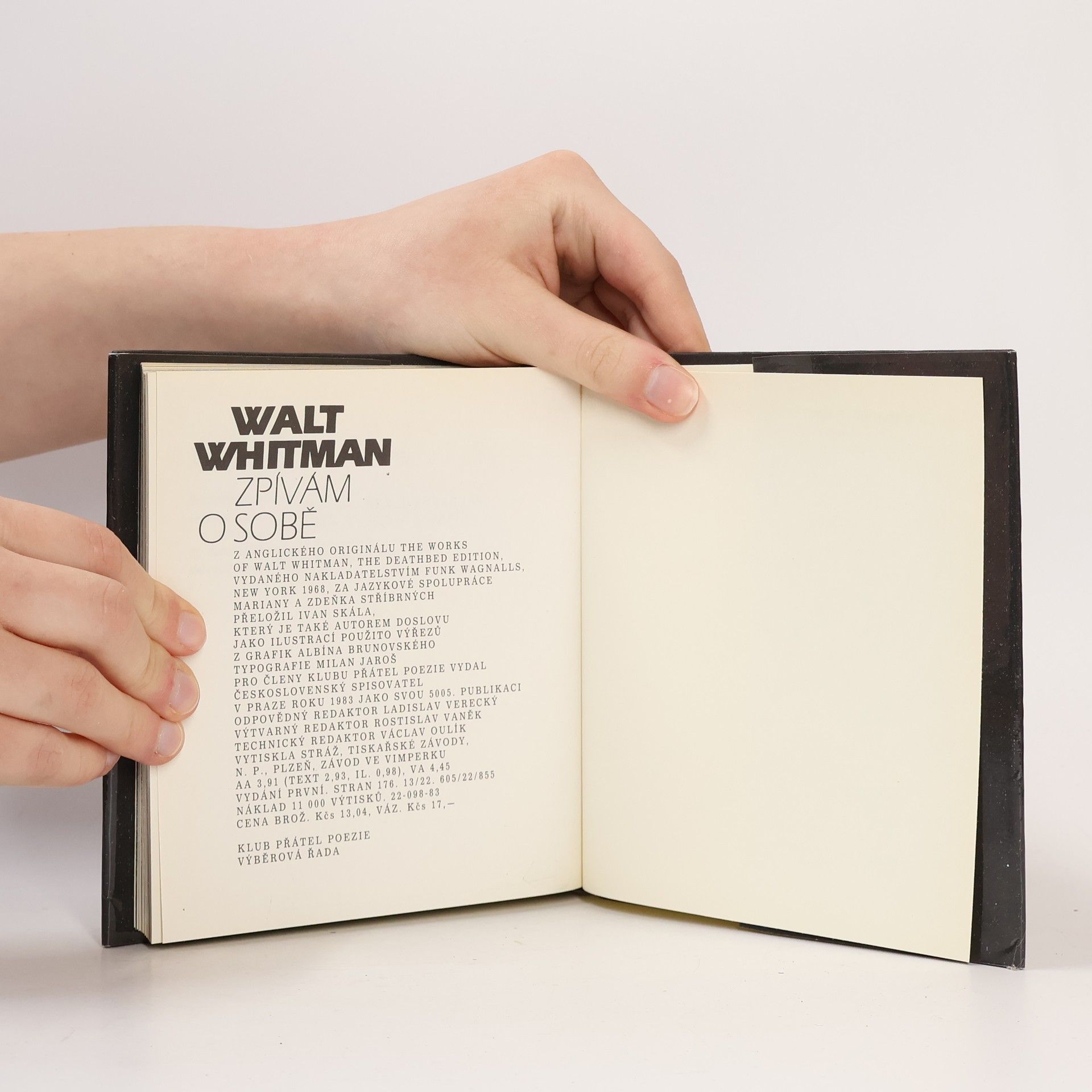 Výbor z básní Walta Whitmana. Z angl. za jazykové spolupráce Mariany a Zdeňka Stříbrných přel. doslov napsal Ivan Skála. Klub přátel poezie, výběrová řada.