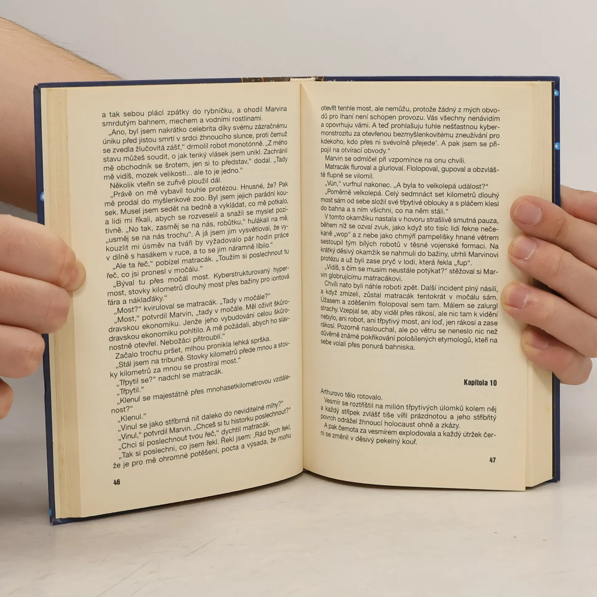 Třetí část pětidílné trilogie. Po mnoha letech se opět setkáváme s Arthurem Dentem, a zanedlouho potom i s ostatními postavami, které jsme opustili v situacích tak či onak nezáviděníhodných. Zákony života, vesmíru a vůbec se surově postrkují Galaxií, tentokrát pro nic menšího, než je záchrana samotného vesmíru. Ano, je znovu čas sbalit ručník, porozhlédnout se po bezpečné skrýši, kam by člověk mohl odložit pud sebezáchovy, a vyrazit. Po tisíciletích ožívá nebezpečí, že poměrně mírumilovný národ se záviděníhodným citem pro melodii podlehne svému děsu z jiných vesmírných ras a na druhý pokus se s nimi vypořádá jednou provždy. V situacích, kdy i zdánlivě nekonečné večírky končí soumrakem bohů, se zdá, že naši hrdinové měli sotva kdy podstatnější důvody opakovaně si připomínat ono nevyčerpatelně povzbudivé Nepropadejte panice!