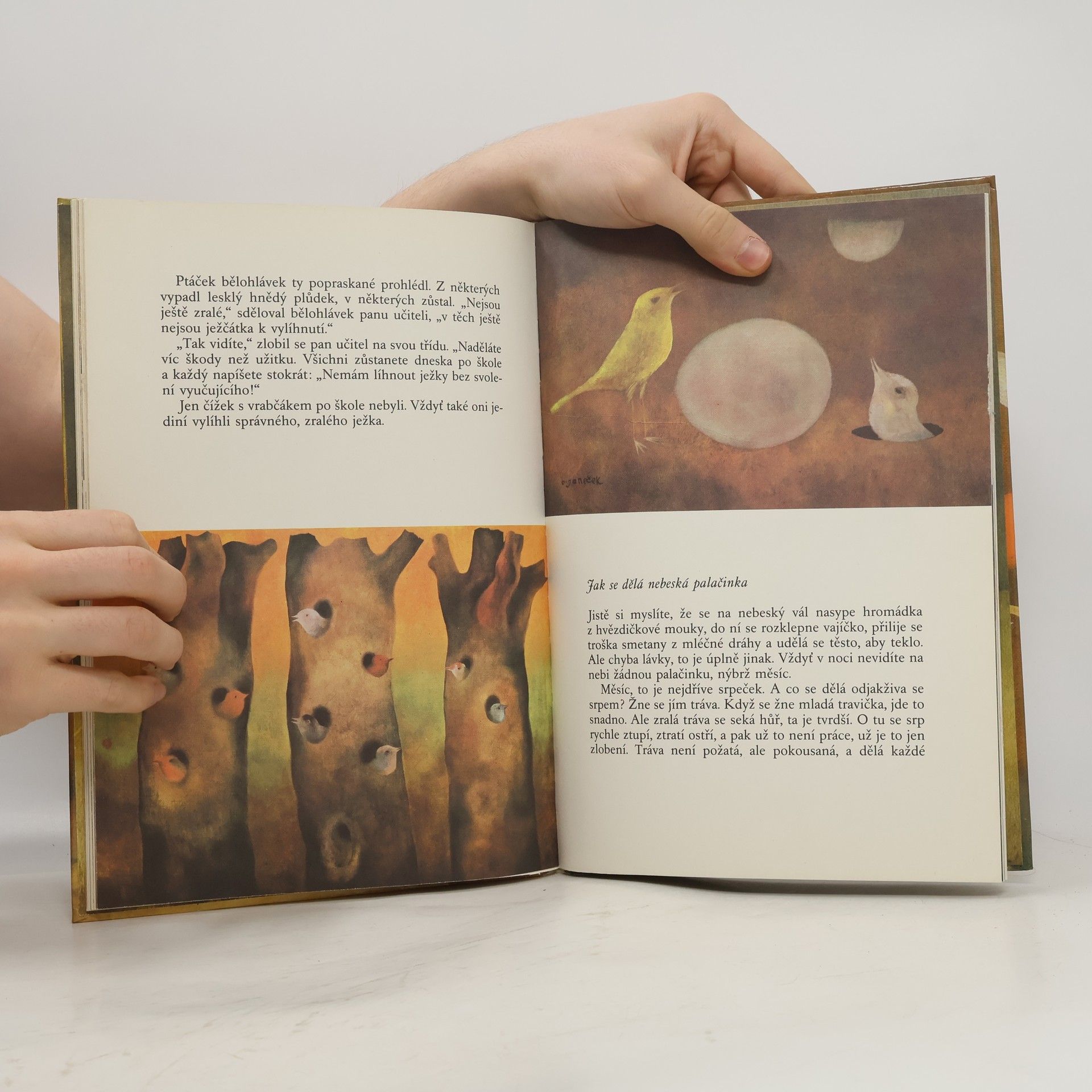 Povídky k obrazům Oty Janečka napsal František Nepil. Pohádky: Pimprle, pan malíř a Múza, Na čem se to houpávali malí obříci, Největší práci dá skřivánkovi žito, Dvanáctý havraní sněm, Než začne ptáček hnízdit, Setkání, Hřbitov se jen zdá smutný, "Kdo z vás ví něco o ježcích?", Jak se dělá nebeská palačinka, O pánovi z lupínku, Jak vypadají hvězdy, Hrál pán na flétnu, Proč se zlomí strom, Jak se pěstují tulipány, Jinovatka. 1. vydání.