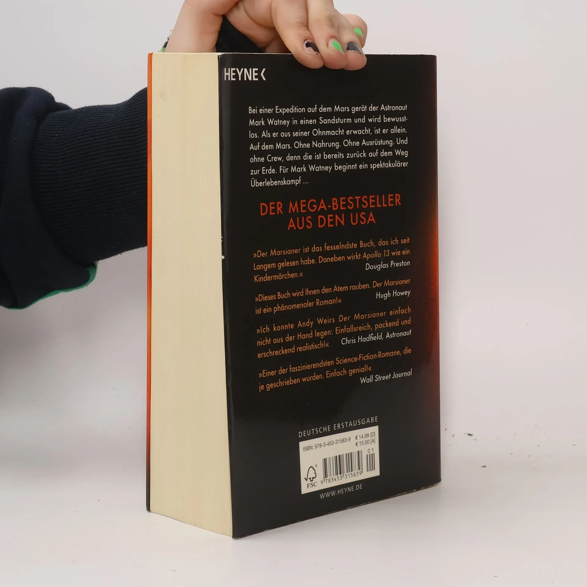 Gestrandet auf dem Mars Der Astronaut Mark Watney war auf dem besten Weg, eine lebende Legende zu werden: Als einer der ersten Menschen in der Geschichte der Raumfahrt betritt er den Mars. Nun, sechs Tage später, ist Mark auf dem besten Weg, der erste Mensch zu werden, der auf dem Mars sterben wird: Bei einer Expedition auf dem Roten Planeten gerät er in einen Sandsturm, und als er aus seiner Bewusstlosigkeit erwacht, ist er allein. Auf dem Mars. Ohne Ausrüstung. Ohne Nahrung. Und ohne Crew, denn die ist bereits auf dem Weg zurück zur Erde. Es ist der Beginn eines spektakulären Überlebenskampfes ...