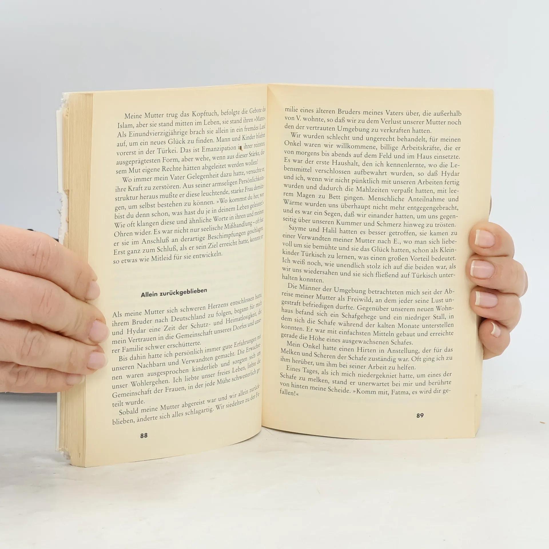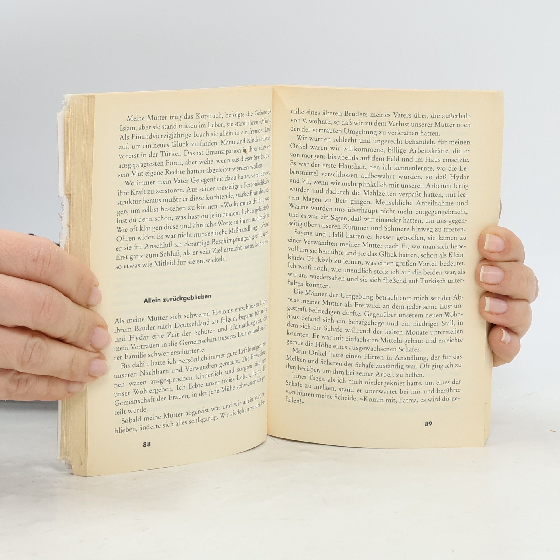 Fatma ist neun, als sie mit ihrer Familie von Ostanatolien nach Deutschland kommt. Die Welt, aus der sie stammt, ist eine Männergesellschaft. Frauen werden lediglich nach ihren Fähigkeiten in Sachen Hausarbeit und Kindererziehung gemessen. Prügel und Gewalt sind an der Tagesordnung. Doch auch in der offenen deutschen Gesellschaft bessert sich Fatmas Lage kaum: In der Schule ist sie die junge aufgeklärte Frau, zuhause wartet der tyrannische Vater. als sie zur Hochzeit mit ihrem ungeliebten Cousin gezwungen werden soll, riskiert sie die Flucht.