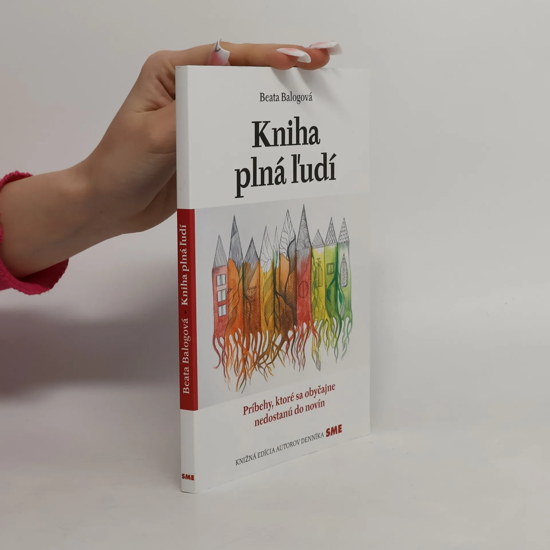 Príbehy sú všade naokolo. Niekedy čakajú na svojho rozprávača roky a len máloktoré sa dostanú do kníh alebo do novín. Šéfredaktorka denníka SME ich pre Knihu plnú ľudí nachádza v záhradách starých mám, na nemocničných chodbách, na cintorínoch, na revolučných námestiach, v školách, na uliciach. Píše o koreňoch, ktoré by nás mali inšpirovať, a nie zotročovať, o ťažkých životných situáciách, v ktorých sme začiatočníci, o starobe, pred ktorou krajina zatvára oči, a o tom, ako sa schováva na dne všetkého veľkého dobrota a láska. Niektoré z textov v knihe boli uverejnené ako autorské strany v denníku SME. Autorka ich po rokoch nanovo premyslela, ďalšie dopísala a doplnila o svoje ilustrácie.
