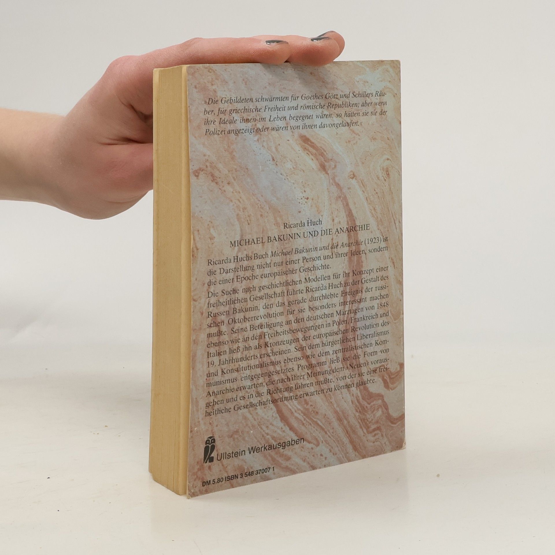 Michail Alexandrowitsch Bakunin war russischer Revolutionär und Anarchist. Er gilt als einer der einflussreichsten Denker, Aktivisten und Organisatoren der anarchistischen Bewegung. Die Schriftstellerin und Historikerin Ricarda Huch zeichnet sein Leben nach, von der Kindheit und Jugend in Russland über erste Bekanntschaften mit kommunistischem und anarchistischem Gedankengut, Begegnungen mit Marx und Proudhon. Bakuninhat die Idee des kollektivistischen Anarchismus entwickelt und war in der Internationalen Arbeiterassoziation Vertreter der Antiautoritären. Er stand in Konflikt mit Marx, was zur Spaltung der Internationale führte und zur Abspaltung der anarchistischen Bewegung von der kommunistischen Bewegung und der Sozialdemokratie.