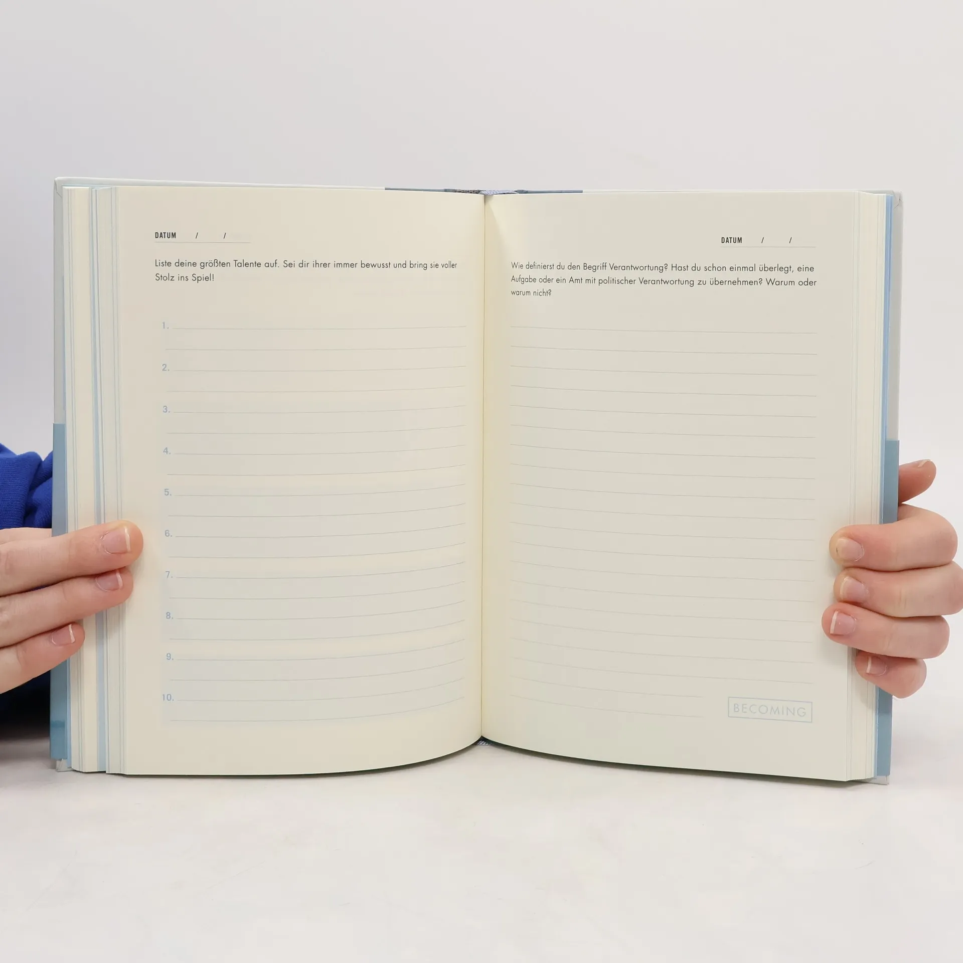 In ihrem Weltbestseller Becoming , der von tiefer Reflexion und hinreißender Erzählkunst geprägt ist, ließ uns Michelle Obama erstmals an der Geschichte ihres Lebens teilhaben und zeigte eindrucksvoll, wie wichtig es ist, der eigenen inneren Stimme zu folgen. Dieses inspirierende und hochwertig gestaltete Ausfüllbuch ermöglicht es nun uns allen, über unsere Geschichte und die unserer Familie nachzudenken, unsere Ziele, Herausforderungen und Träume zu reflektieren und voller Hoffnung zu hinterfragen, welche Zukunft wir uns für uns und die Gesellschaft, in der wir leben, vorstellen können. Die in diesem Ausfüllbuch versammelten Fragen lassen sich entweder nacheinander oder einzeln beantworten; in jedem Fall können wir es als treuen Begleiter und zum Festhalten unserer Gedanken nutzen. Die Reflexion über unser Leben macht uns alle zu kraftvollen Erzählern unserer persönlichen Geschichte – so wie es Michelle Obama auch gelungen ist! Ausstattung: zweifarbig