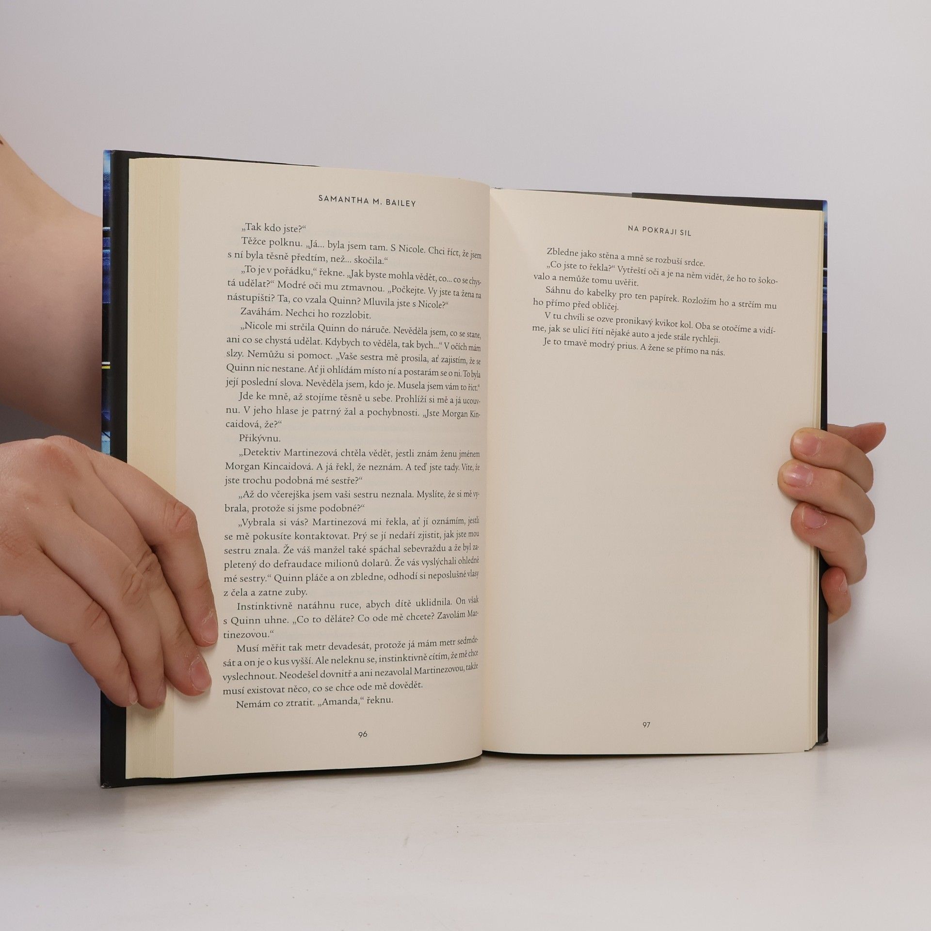 PŘEDÁ TI SVÉ DÍTĚ A PAK… SKOČÍ. Jeden krátký moment na nástupišti navždy změní dva osudy. Ale nic není, jak se na první pohled zdá… Ve zlomku vteřiny se Morganin život obrátí vzhůru nohama. Neznámá žena jí vloží do náruče své dítě a pak skočí pod rozjetý vlak. Morgan ji nikdy předtím neviděla, a nedokáže pochopit, co donutí člověka k tomu vzdát se vlastního dítěte a takovýmto způsobem spáchat sebevraždu. Když Morgan vyslýchá policie, dozvídá se, že žádný ze svědků nepotvrdil její výpověď. A jakmile vyšetřovatelé zjistí, že sama dlouho touží po dítěti, stává se okamžitě podezřelou. Aby dokázala svou nevinu, snaží se zjistit, co žena dělala v posledních dnech svého života. Pomalu jí začíná docházet, že Nicole Markhamová věřila, že jsou ona i její dítě v nebezpečí. Teď by mohlo to samé hrozit i Morgan. Byla Nicole novopečená matka bojující s paranoiou? Nebo jde o něco mnohem horšího?