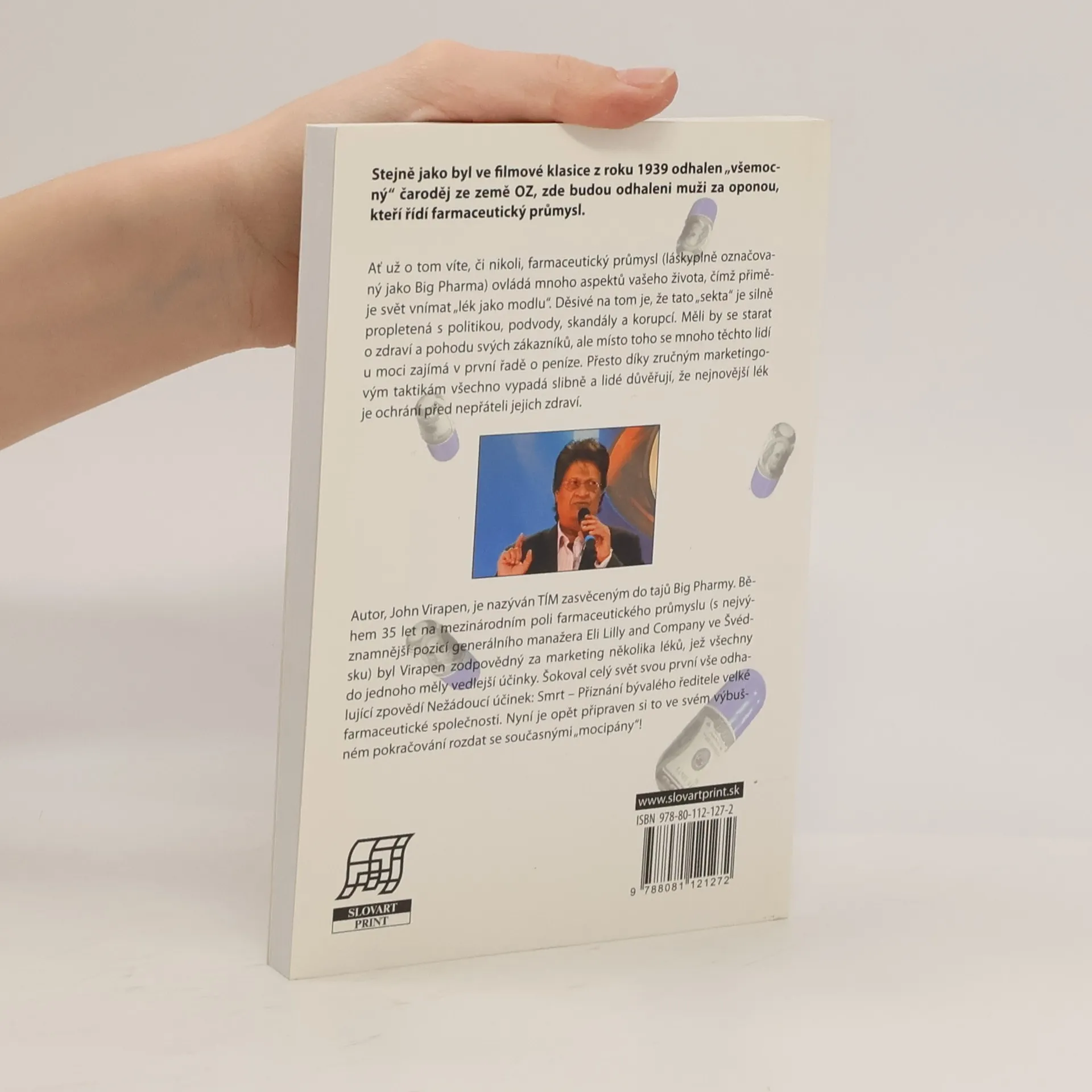 Autor, John Virapen, je nazýván TÍM zasvěceným do tajů Big Pharmy. Během 35 let na mezinárodním poli farmaceutického průmyslu (s nejvýznamnější pozicí generálního manažera Eli Lilly and Company ve Švédsku) byl Virapen zodpovědný za marketing několika léků, jež všechny do jednoho měly vedlejší účinky. Šokoval celý svět svou první vše odhalující zpovědí Nežádoucí účinek: Smrt - Přiznání bývalého ředitele velké farmaceutické společnosti. Nyní je opět připraven si to ve svém výbušném pokračování rozdat se současnými "mocipány"!