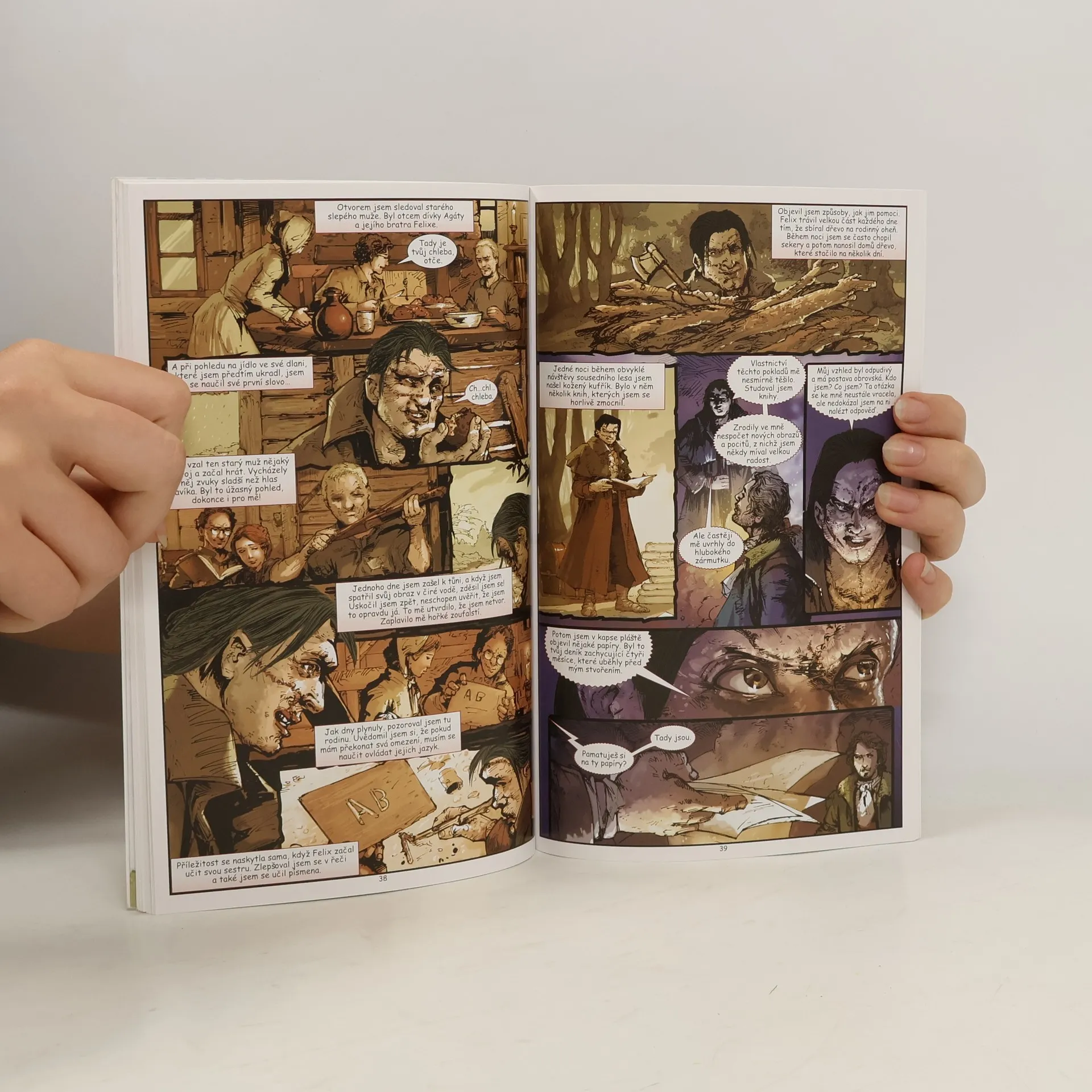 Člověk má již odedávna moc vzít život, ale co se stane, když se naučí život darovat? Mladého Viktora Frankensteina, dychtivého studenta přírodních věd, pronásleduje tato otázka natolik, až se z ní stane posedlost, a on veškeré své síly a schopnosti věnuje úsilí vdechnout život neživé hmotě. Díky impozantním znalostem chemie i dalších oborů začne sestavovat bytost z ukradených a porůznu shromážděných částí lidského těla. Nakonec skutečně vytvoří a oživí muže, ale zavrhne ho pro jeho fyzickou odpudivost a děsivost. Časem netvor připraví pomstychtivé tažení proti svému stvořiteli - nedokáže se totiž smířit s tím, že navzdory tomu, že je bytostí obdařenou city i rozumem, má být odvržen a odsouzen k osamělé existenci. A tak začíná boj mezi tvůrcem a jeho výtvorem... Světoznámý a mnohokrát zfilmovaný román anglické autorky Mary Shelleyové je tentokrát zpracován do podoby komiksu.