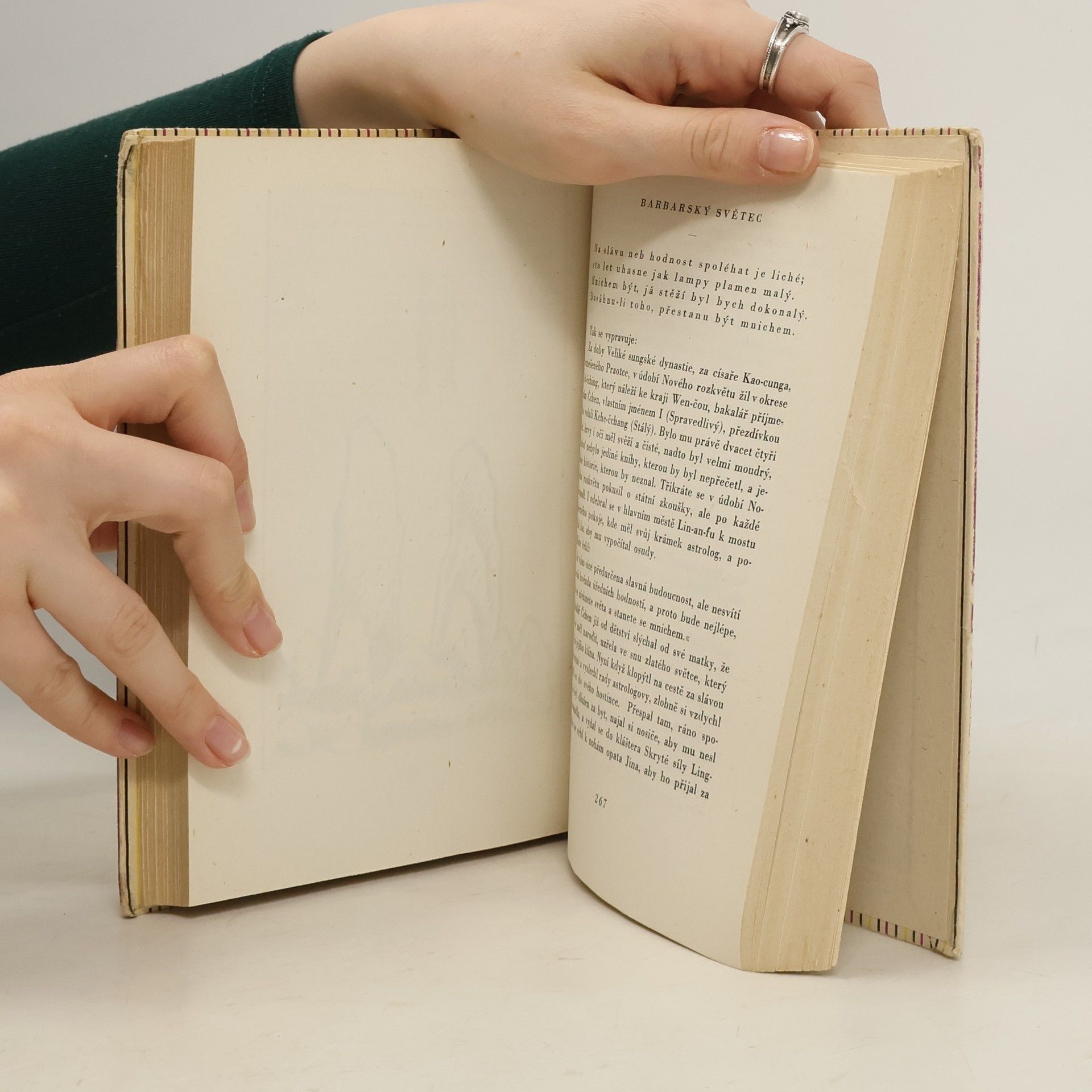Výbor 12 povídek, jež jsou literárním zpracováním příběhů, které na tržištích a bazarech čínských středověkých velkoměst vyprávěli lidoví umělci-profesionálové. Přestože jsou příběhy výstavbou i zápletkami poplatné feudálním literárním formám a způsobu myšlení (hemží se to v nich upíry, démony, světci, kouzly a zaříkadly, fantastickými milostnými, kriminálními a zbojnickými historkami), jejich základním rysem je hluboký realismus, který poprvé uvádí do literatury nejnižší vrstvy čínských velkoměst - řemeslníky, kupce, učitele, zřízence a pod. Vedle silného vlasteneckého a demokratického tónu (ohlas lidového hnutí proti vpádům mandžuských Džurčenů) vynikají povídky vysokou uměleckou formou, neboť jsou uváděny lyrickými prology a próza je prokládána básnickými vložkami. - Čeština je prvním z evropských jazyků, do něhož jsou tyto ukázky "zlaté doby čínské povídky" přeloženy. (Podle J. Průška.) Doslov napsal a poznámkami opatřil Jaroslav Průšek. V knize je zřejmě chybně u vydání z roku 1954, že jde o I.vydání.