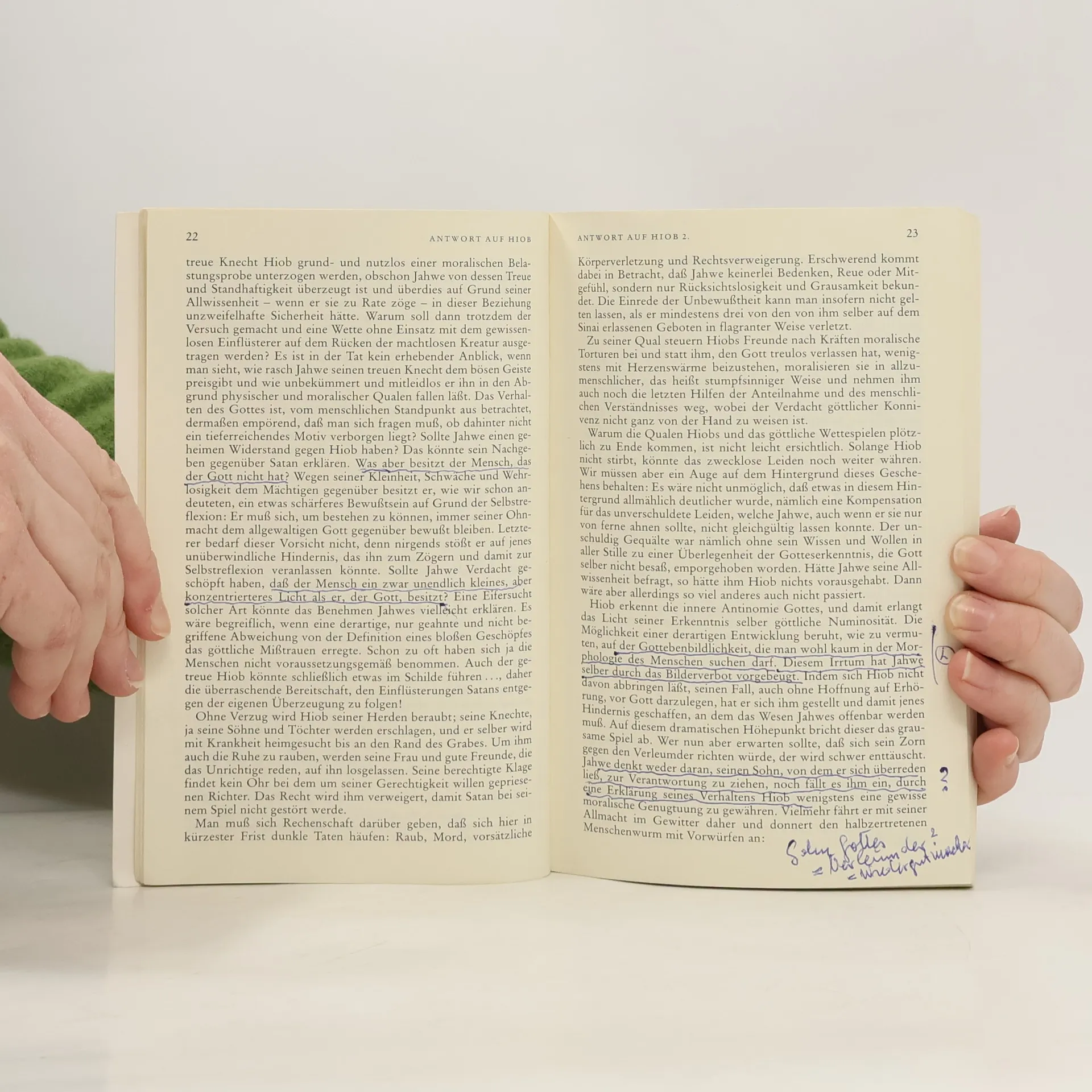 Hiob, von Gott mit schrecklichen Schicksalsschlägen geplagt, hat sich wie kein anderer Mensch vor ihm gegen Gott empört. Für Jung bildet das Buch Hiob einen Markstein auf den Weg der Menschwerdung Gottes, denn hier enthüllt sich Gott in all seiner Widersprüchlichkeit, ungerecht und grausam. In diesem 1952 erschienen Spätwerk wirft Jung Grundfragen des Gottesbildes auf und faßt religionspsychologische Überlegungen zusammen, die sich durch sein ganzes Werk ziehen. Geleitet wird Jung dabei von der Frage nach der religiösen Grundbefindlichkeit der Seele.