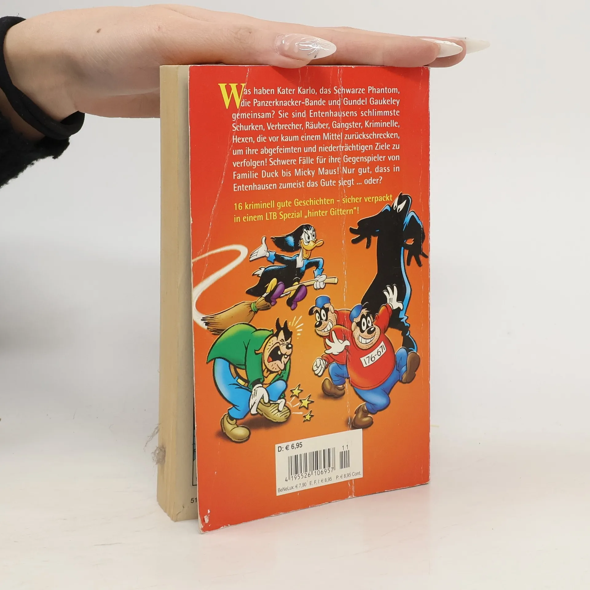 Was haben Kater Karlo, das Schwarze Phantom, die Panzerknacker-Bande und Gundel Gaukeley gemeinsam?Sie sind Entenhausens schlimmste Schurken, Verbrecher, Räuber, Gangster, Kriminelle, Hexen, die vor kaum einem Mittel zurückschrecken, um ihre abgefeimten und niederträchtigen Ziele zu verfolgen! Schwere Fälle für ihre Gegenspieler von Familie Duck bis Micky Maus! Nur gut, dass in Entenhausen zumeist das Gute siegt... oder?16 kriminell gute Geschichten - sicher verpackt in einem LTB Spezial "hinter Gittern"!