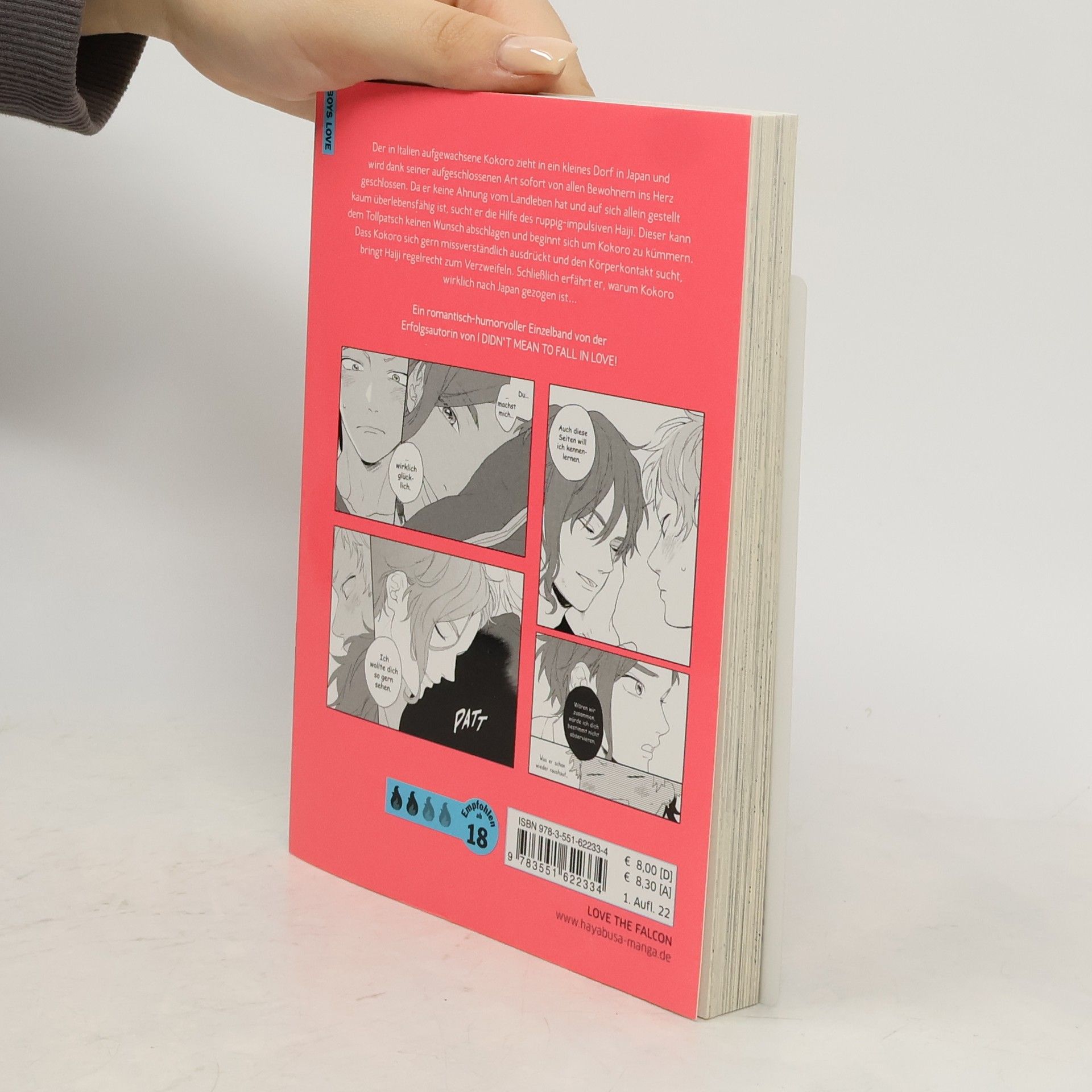 Der in Italien aufgewachsene Kokoro zieht in ein kleines Dorf in Japan und wird dank seiner aufgeschlossenen Art sofort von allen Bewohnern ins Herz geschlossen. Da er keine Ahnung vom Landleben hat und auf sich allein gestellt kaum überlebensfähig ist, sucht er die Hilfe des ruppig-impulsiven Haiji. Dieser kann dem Tollpatsch keinen Wunsch abschlagen und beginnt sich um Kokoro zu kümmern. Dass Kokoro sich gern missverständlich ausdrückt und den Körperkontakt sucht, bringt Haiji regelrecht zum Verzweifeln. Schließlich erfährt er, warum Kokoro wirklich nach Japan gezogen ist… Weitere Informationen: Spice-Level: 2 von 4 Flammen. In diesem Boys-Love-Titel stehen die Gefühle im Mittelpunkt. Mit einzelnen expliziten Szenen. Einzelband Ein romantisch-humorvoller Einzelband von Minta Suzumaru, der Erfolgsautorin von I DIDN'T MEAN TO FALL IN LOVE!