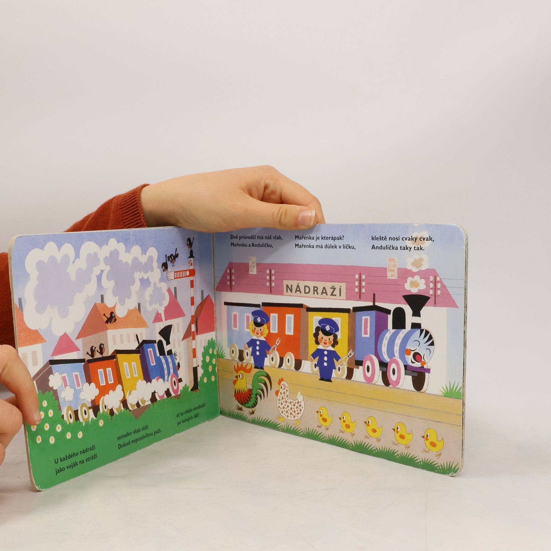 Oblíbené leporelo s verši, klasika české poezie pro děti. Veselá mašinka provází malé čtenáře po nádražích, vypravuje o průvodčích a strojvedoucím, o semaforu a výhybkách, o kolejnicích a železném mostu i o zaslouženém odpočinku po dlouhé cestě. Pro děti od dvou let.