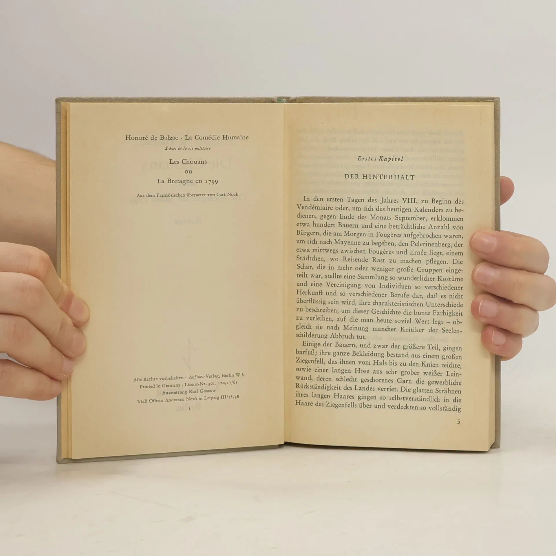 Honoré de Balzacs Bemühen, Walter Scott, den Meister des historischen Romans, und dessen Geheimnis, aus der Vergangenheit sinnfällige Gegenwart werden zu lassen, nachzueifern, ist in besonderer Weise im Roman Die Chouans gelungen. Die Geschichte spielt 1799 in der Bretagne, wo die Bauernschaft, von altgläubigen Geistlichen und royalistischen Emigranten fanatisiert, einen erbarmungslosen Kleinkrieg gegen die republikanischen Soldaten des Konsuls Bonaparte führen. Sie überfallen Postkutschen, rauben Reisende aus, strafen in Femegerichten echte und vermeintliche Verräter ihrer Sache. Der Zusammenprall zwischen den Verteidigern des Ancien régime und denen der neuen Republik wird nicht in dürren Worten geschildert, das besorgen Balzacs kräftige Zeitbilder in zwingender Anschaulichkeit. Erzählt wird vor dem Hintergrund dieses blutvollen Kampfes die dramatische Liebesgeschichte zwischen dem jungen Marquis de Montauran, Führer der königstreuen Chouans, und der schönen Marie de Verneuil, die den Marquis im Auftrag des mächtigen Polizeiministers Fouché eigentlich ausspionieren und verderben soll. Die Liebe der beiden Helden scheitert ebenso wie ihr politischer Auftrag.