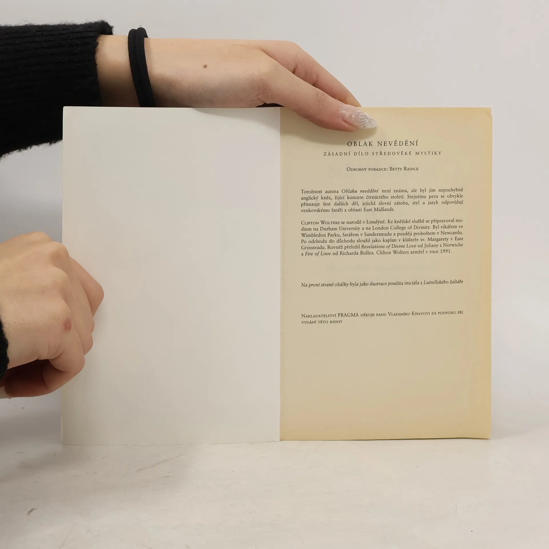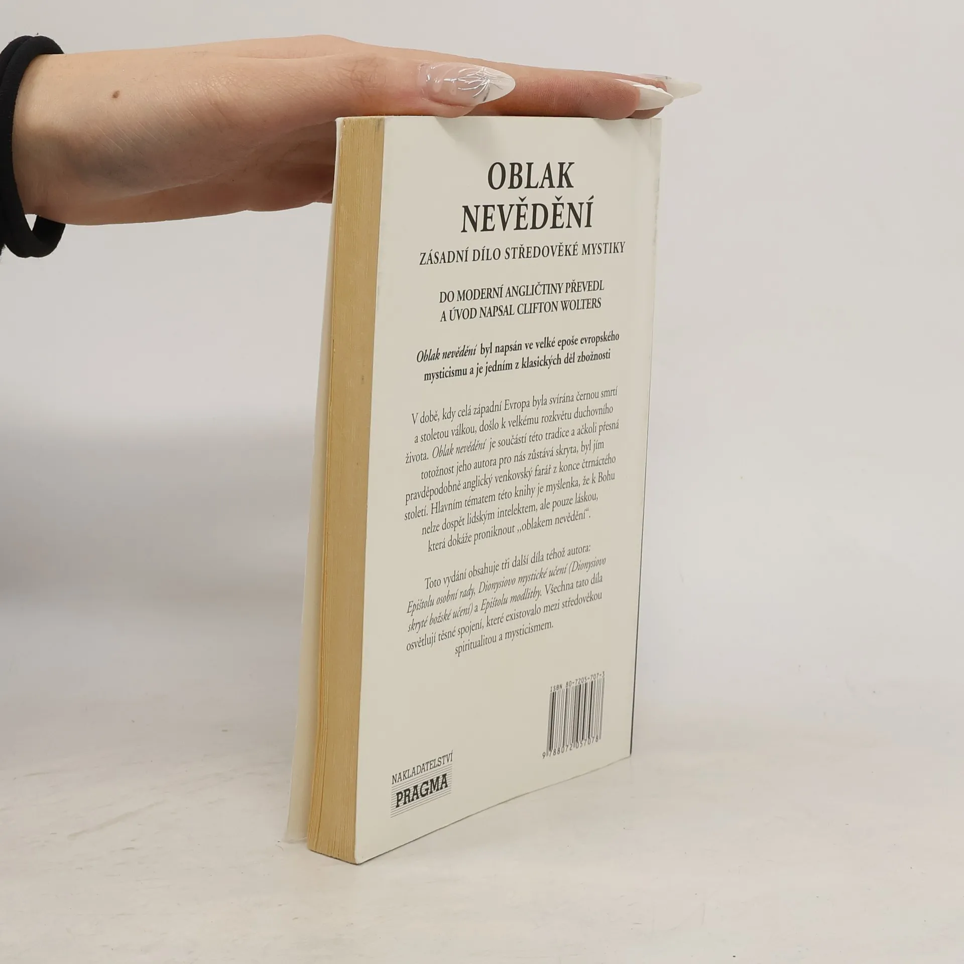 Oblak nevědění je zásadní dílo středověké mystiky, jehož autorem je pravděpodobně anglický venkovský farář z konce čtrnáctého století. Hlavním tématem knihy je myšlenka, že k Bohu nelze dospět lidským intelektem, ale pouze láskou, která dokáže proniknout "oblakem nevědění". Toto vydání obsahuje tři další díla téhož autora: Epištolu osobní rady, Dionysiovo mystické učení a Epištolu modlitby. Do moderní angličtiny převedl a úvod napsal Clifton Wolters.... celý text