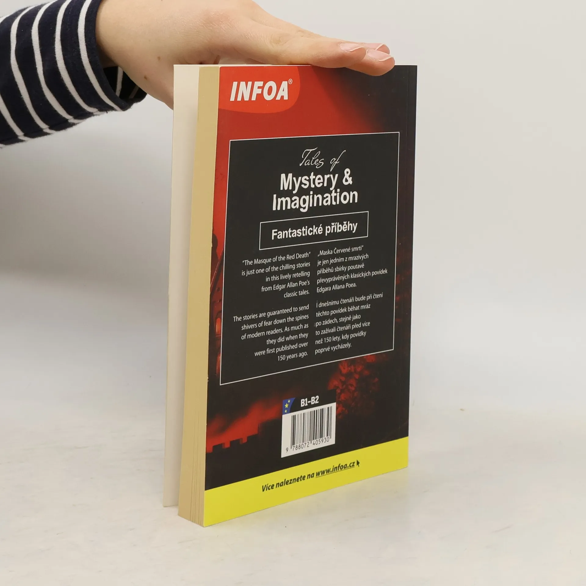 Anglicko-česká verze, zrcadlový text hororových povídek E. Allana Poea. Pro začátečníky, vhodné jako doplněk výuky angličtiny. Maska Červené smrti Rukopis nalezený v láhvi Jáma a kyvadlo Metzengerstein Zrádné srdce Pád domu Usherů Zlatý brouk