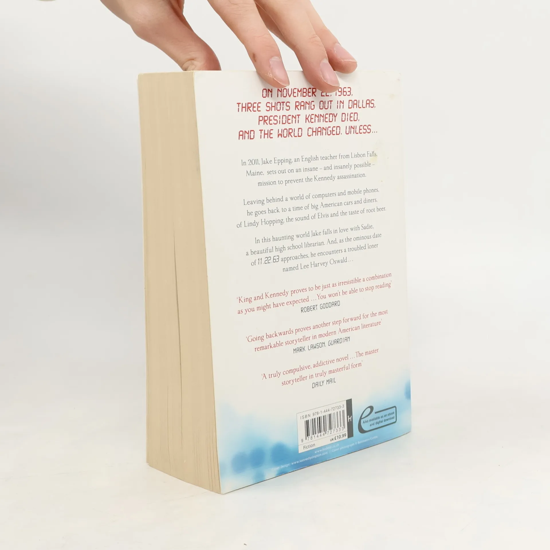 King's highly acclaimed novel, now with a stunning new cover look. WHAT IF you could go back in time and change the course of history? WHAT IF the watershed moment you could change was the JFK assassination? 11.22.63, the date that Kennedy was shot - unless . . . King takes his protagonist Jake Epping, a high school English teacher from Lisbon Falls, Maine, 2011, on a fascinating journey back to 1958 - from a world of mobile phones and iPods to a new world of Elvis and JFK, of Plymouth Fury cars and Lindy Hopping, of a troubled loner named Lee Harvey Oswald and a beautiful high school librarian named Sadie Dunhill, who becomes the love of Jake's life - a life that transgresses all the normal rules of time. With extraordinary imaginative power, King weaves the social, political and popular culture of his baby-boom American generation into a devastating exercise in escalating suspense.