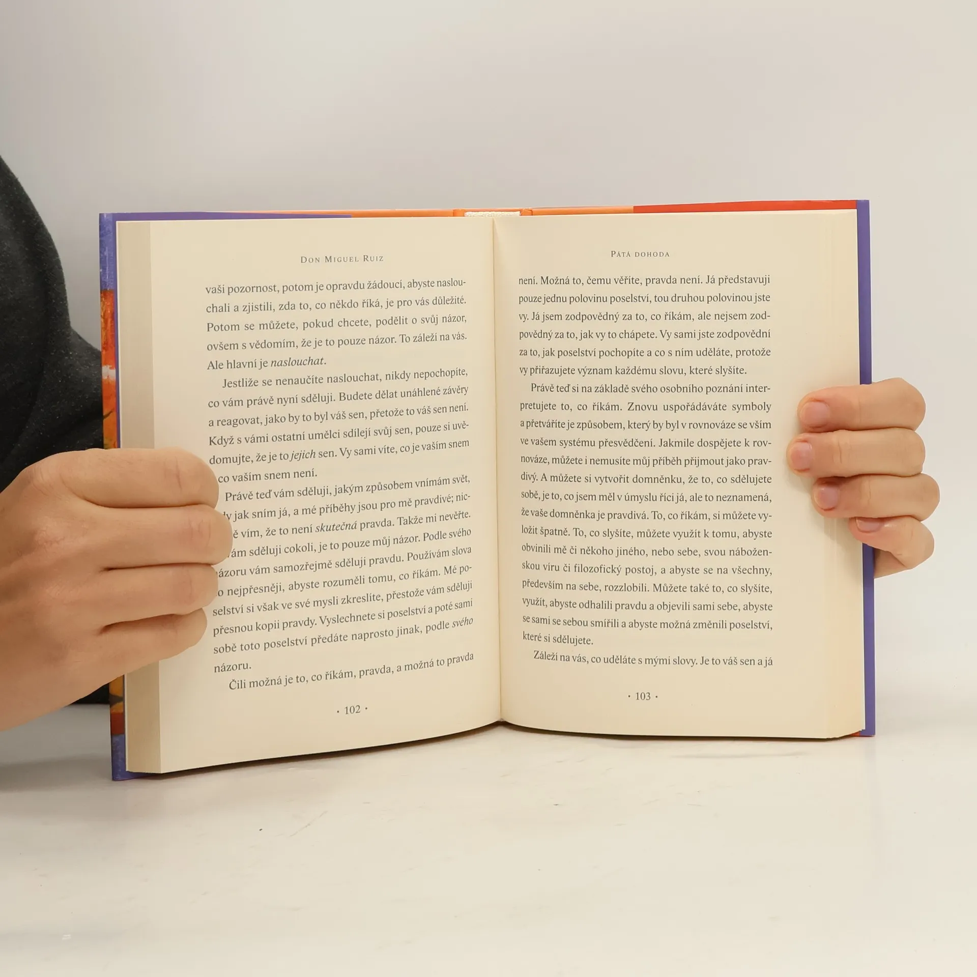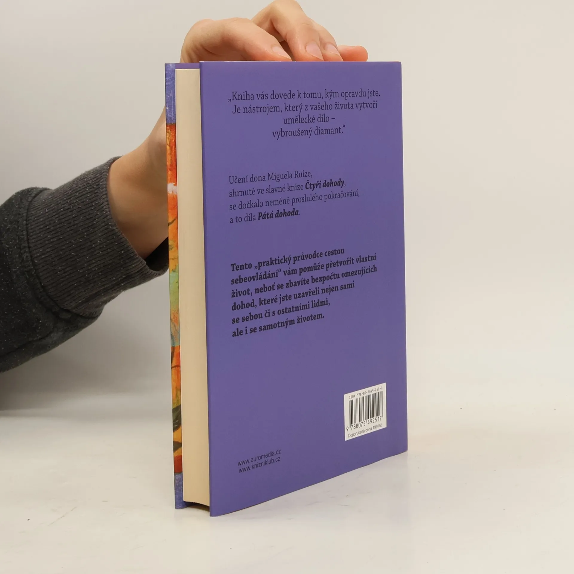 Učení dona Miguela Ruize, shrnuté ve slavné knize Čtyři dohody, se dočkalo neméně proslulého pokračování, a to díla Pátá dohoda. Tento "praktický průvodce cestou sebeovládání" vám pomůže přetvořit vlastní život, neboť se zbavíte bezpočtu omezujících dohod, které jste uzavřeli nejen sami se sebou či s ostatními lidmi, ale i se samotným životem.