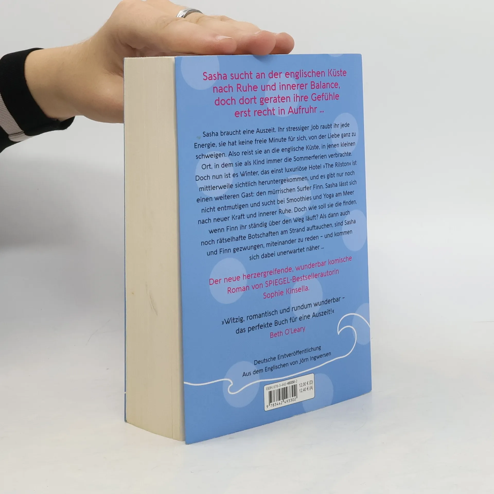 Der neue herzergreifende, wunderbar komische Roman von SPIEGEL-Bestsellerautorin Sophie Kinsella. Sasha braucht eine Auszeit. Ihr stressiger Job raubt ihr jede Energie, sie hat keine freie Minute für sich, von der Liebe ganz zu schweigen. Also reist sie an die englische Küste, in jenen kleinen Ort, in dem sie als Kind immer die Ferien verbrachte. Doch nun ist es Winter, das einst luxuriöse Hotel »The Rilston« ist mittlerweile sichtlich heruntergekommen, und es gibt nur noch einen weiteren Gast: den mürrischen Surfer Finn. Sasha lässt sich nicht entmutigen und sucht bei Smoothies und Yoga am Meer nach neuer Kraft und innerer Ruhe. Doch wie soll sie die finden, wenn Finn ihr ständig über den Weg läuft? Als dann auch noch rätselhafte Botschaften am Strand auftauchen, sind Sasha und Finn gezwungen, miteinander zu reden – und kommen sich dabei unerwartet näher …
