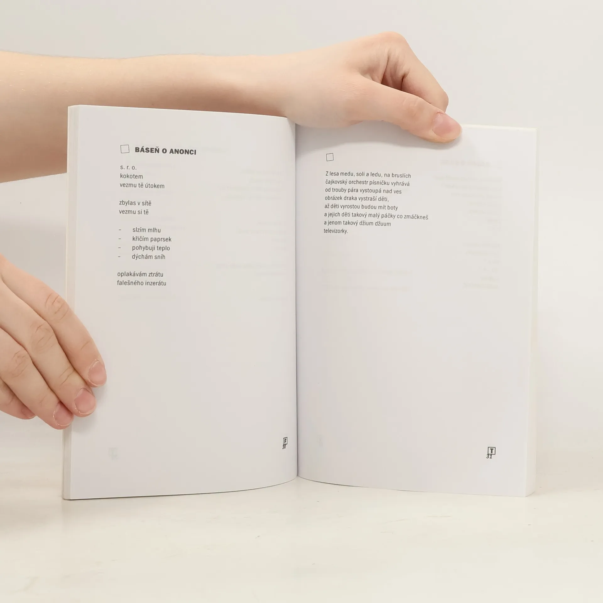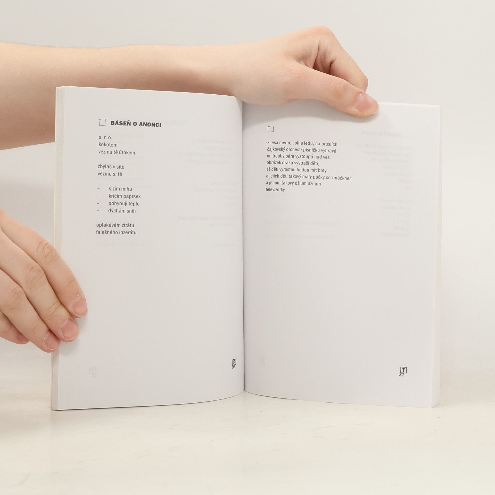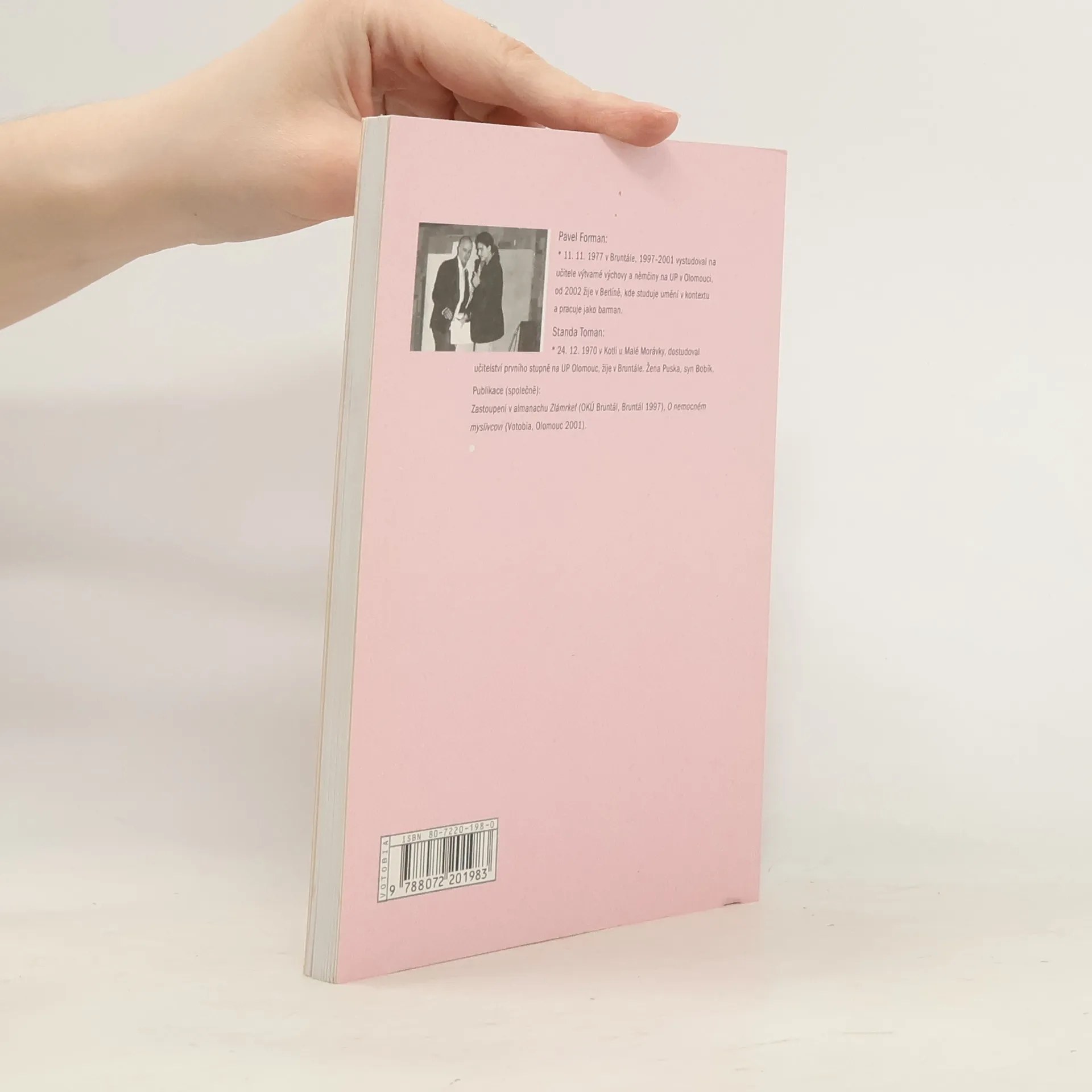 Naturalistické verše neo-dada uskupení dvou kamarádů, P. Formana a S. Tomana, kteří již vydali sbírku poezie O nemocném myslivcovi (Votobia 2001), doplňují tématicky laděné bitmapy z obrazů prvního z nich. Účast dvou tvůrců na jedné sbírce je úkaz, který v historii poezie téměř nemá obdoby a může se proto považovat za zcela ojedinělý: v teoretické rovině lze v tomto případě předpokládat takový literární postup, v němž jeden z autorů napsal vždy báseň na určité téma, kterou druhý doplnil svébytným komentářem. A tak vznikla sbírka, jejímž přínosem je vypracování a poté i zpracování originálního literárního útvar. Pavel Forman se narodil 11. listopadu 1977 v Bruntále, vystudoval učitelství výtvarné výchovy a němčiny na UP v Olomouci. Od roku 2002 žil v Berlíně, kde studoval na Humboldtově Universitě a Fakultě výtvarných umění. Nyní žije ve Vilniusu, Olomouci, Bruntále, Berlíně, Kodani a bůh ví kde ještě v Evropě. Standa Toman se narodil 24. prosince 1970 v Kotli u Malé Morávky, vystudoval učitelství prvního stupně na UP Olomouc, žije v Bruntále.