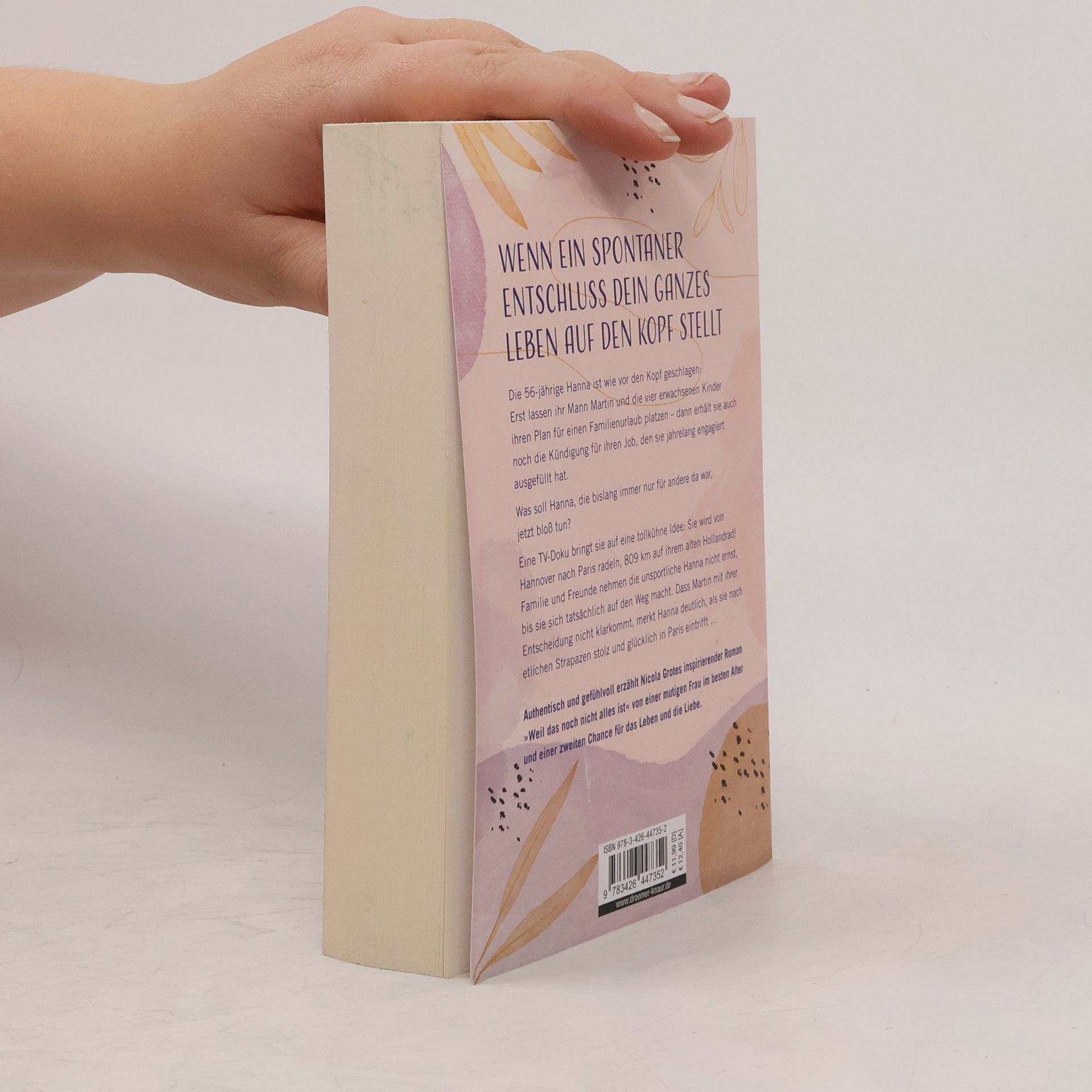Wenn ein spontaner Entschluss dein ganzes Leben auf den Kopf stellt Authentisch und gefühlvoll erzählt Nicola Grotes inspirierender Roman »Weil das noch nicht alles ist« von der 56-jährigen Hanna, einer Radtour von Hannover nach Paris und einer zweiten Chance für das Leben und die Liebe. Die 56-jährige Hanna ist wie vor den Kopf geschlagen: Erst lassen ihr Mann Martin und die vier erwachsenen Kinder ihren Plan für einen Familienurlaub platzen – dann erhält sie auch noch die Kündigung für ihren Job, den sie jahrelang liebevoll und engagiert ausgefüllt hat. Was soll Hanna, die bislang immer nur für andere da war, jetzt bloß tun? Eine TV-Doku bringt sie auf eine tollkühne Idee: Sie wird von Hannover nach Paris radeln, 809 km auf ihrem alten Hollandrad! Familie und Freunde nehmen die unsportliche Hanna nicht ernst, bis sie sich tatsächlich auf den Weg macht. Dass Martin mit ihrer Entscheidung nicht klarkommt, merkt Hanna deutlich, als sie nach etlichen Strapazen stolz und glücklich in Paris eintrifft … Nicola Grotes Roman über eine Frau im besten Alter, die zum ersten Mal etwas nur für sich selbst tut, macht mit seiner positiven Grundstimmung Mut, über einen Neuanfang nachzudenken.