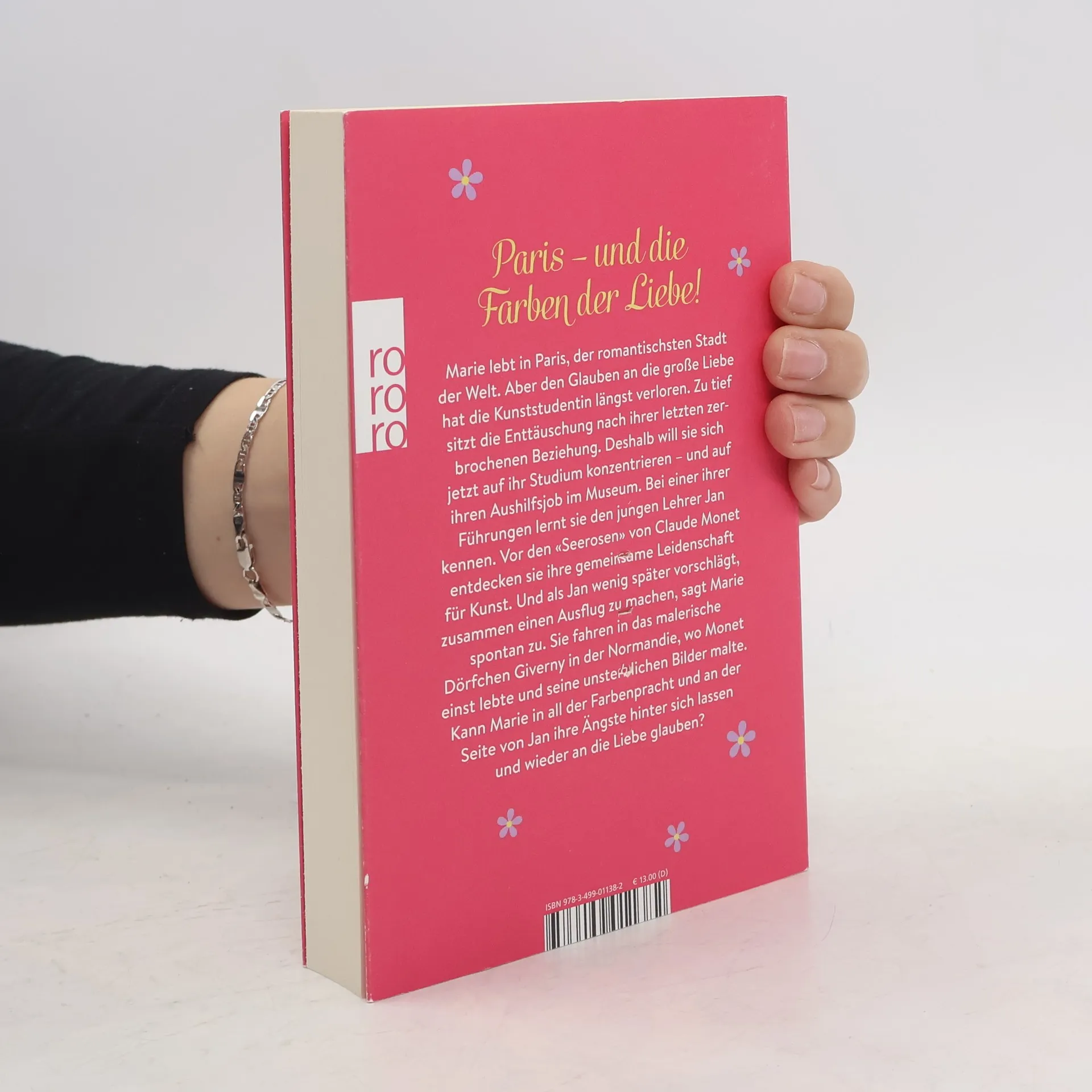 Paris – und die Farben der Liebe! Marie lebt in Paris, der romantischsten Stadt der Welt. Aber den Glauben an die große Liebe hat die Kunststudentin längst verloren. Zu tief sitzt die Enttäuschung nach ihrer letzten zerbrochenen Beziehung. Deshalb will sie sich jetzt auf ihr Studium konzentrieren – und auf ihren Aushilfsjob im Museum. Bei einer ihrer Führungen lernt sie den jungen Lehrer Jan kennen. Vor den «Seerosen» von Claude Monet entdecken sie ihre gemeinsame Leidenschaft für Kunst. Und als Jan wenig später vorschlägt, zusammen einen Ausflug zu machen, sagt Marie spontan zu. Sie fahren in das malerische Dörfchen Giverny in der Normandie, wo Monet einst lebte und seine unsterblichen Bilder malte. Kann Marie in all der Farbenpracht und an der Seite von Jan ihre Ängste hinter sich lassen und wieder an die Liebe glauben?