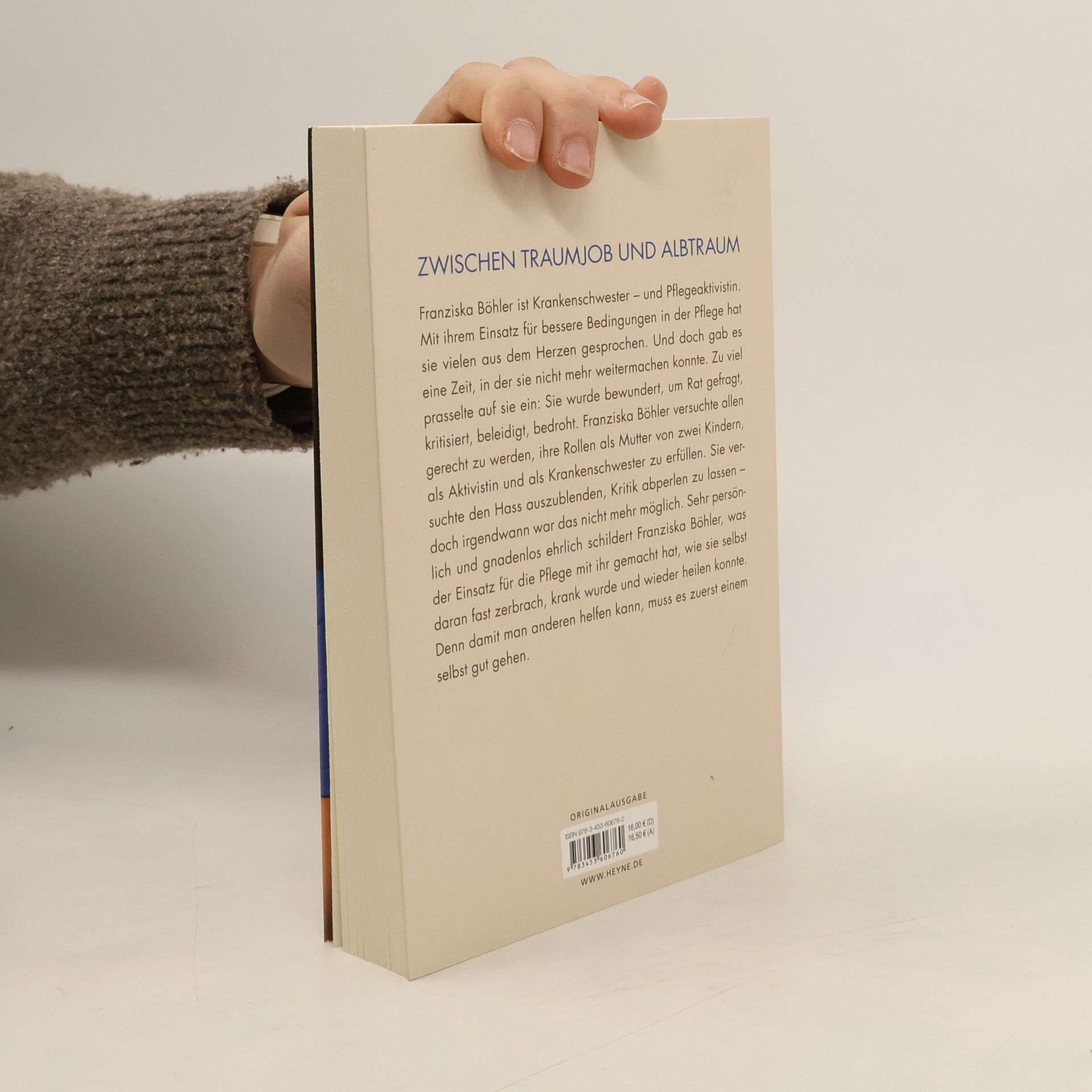 Franziska Böhler ist Krankenschwester – und Pflegeaktivistin. Mit ihrem Einsatz für bessere Bedingungen in der Pflege hat sie vielen aus dem Herzen gesprochen. Und doch gab es eine Zeit, in der sie nicht mehr weitermachen kann. Zu viel prasselt auf sie ein: Sie wird bewundert, um Rat gefragt, und sie wird kritisiert, beleidigt, bedroht. Franziska Böhler versucht allem gerecht zu werden, als Mutter von zwei Kindern, als Aktivistin und als Krankenschwester. Sie versucht den Hass auszublenden, Kritik abperlen zu lassen – doch irgendwann ist das nicht mehr möglich. Panikattacken und Burnout sind die Folge. Hinzu kommt der Frust, dass sich an den katastrophalen Bedingungen in der Pflege nichts ändert. Trotzdem: Die Krankenpflege ist und bleibt Franziska Böhlers Traumberuf. Sie identifiziert sich mit ihm, er erdet sie. Sehr persönlich und gnadenlos ehrlich schildert Franziska Böhler, was der Einsatz für die Pflege mit ihr gemacht hat, wie sie selbst daran fast zerbrach, krank wurde und wieder heilen konnte. Denn damit man anderen helfen kann, muss es zuerst einem selbst gut gehen. Und sie stellt die Frage, wie wir mit den Menschen umgehen, die sich für andere einsetzen – sei es im Krankenhaus oder im Aktivismus.