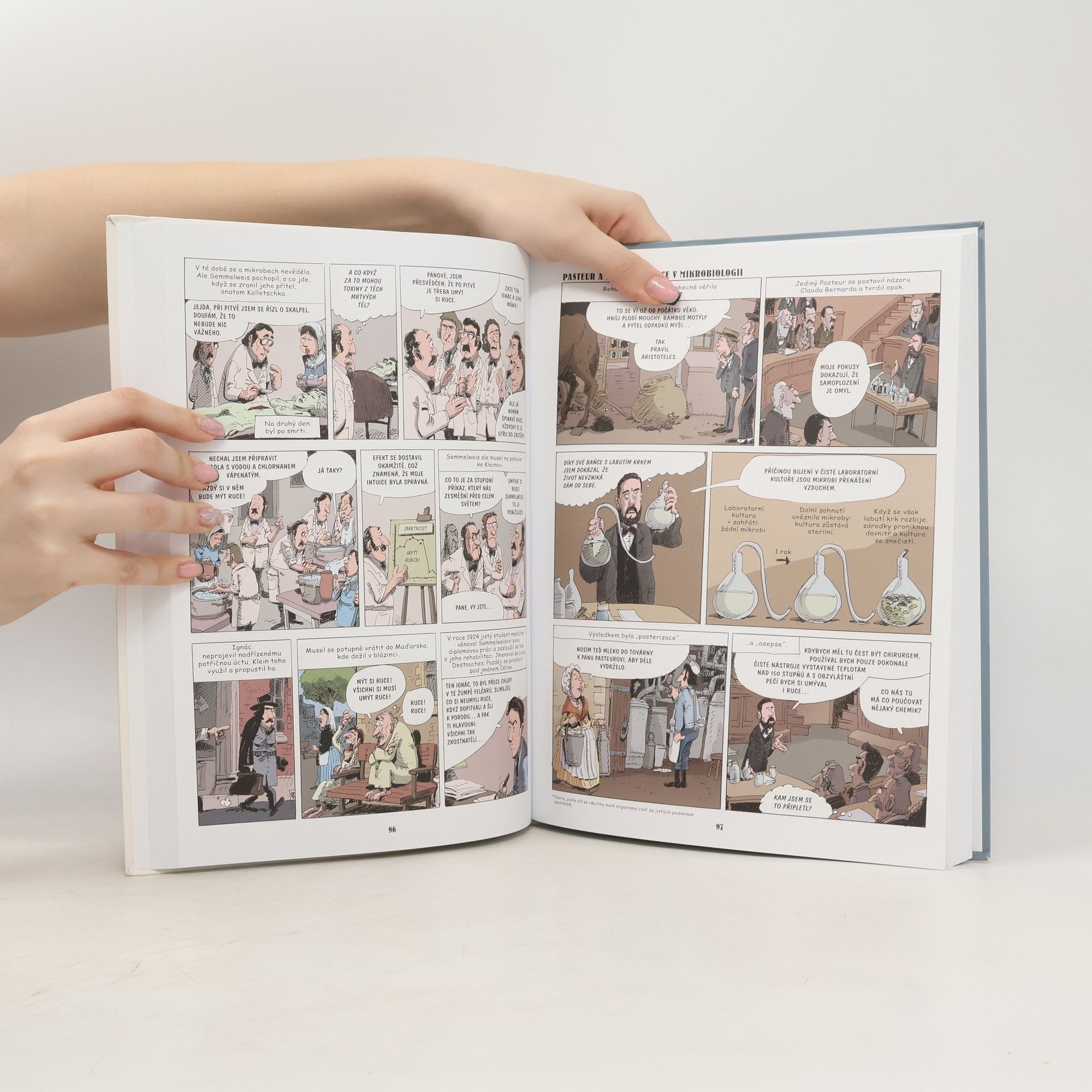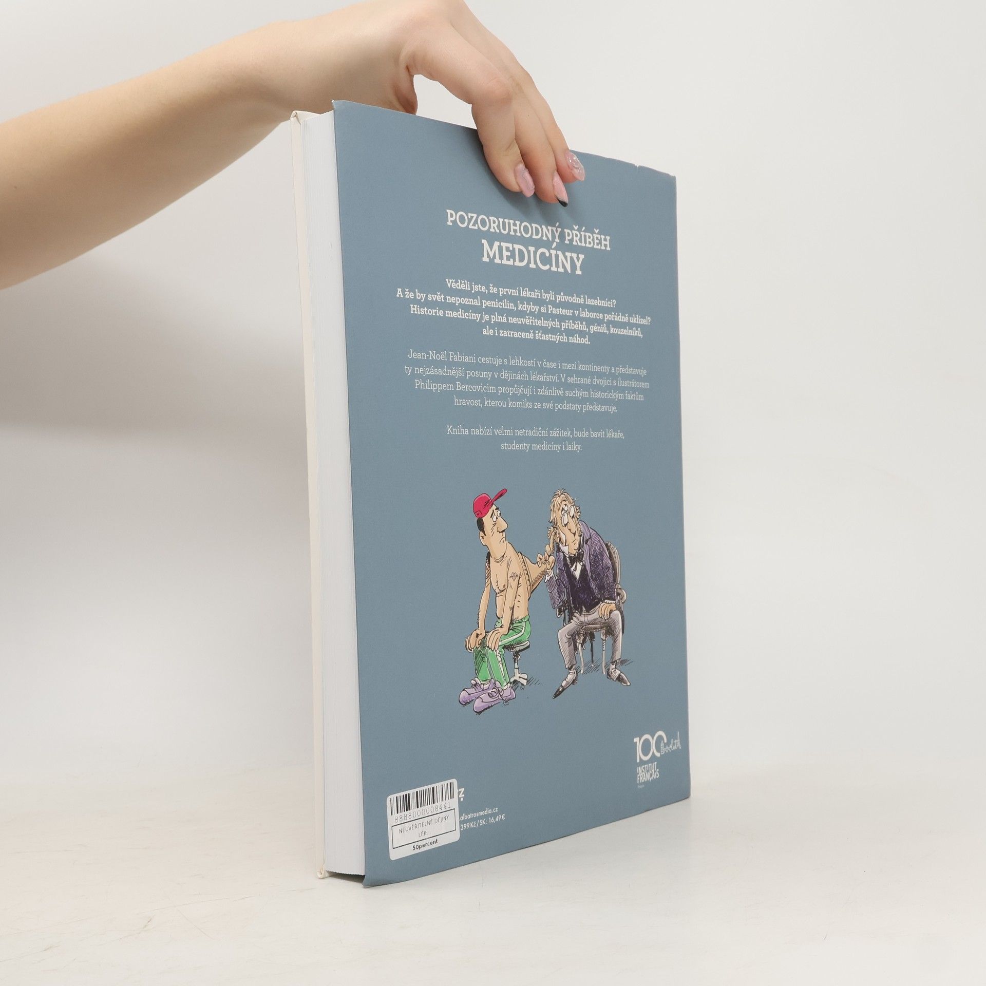 Historie medicíny v komiksu. Věděli jste, že první lékaři byli původně lazebníci? A že by svět nepoznal penicilin, kdyby si Pasteur v laborce uklízel? Publikace v sobě spojuje lehkost a hravost, kterou komiks ze své podstaty představuje, a poměrně náročné téma – popisuje jednotlivé etapy vývoje lékařství do nejmenších odborných detailů. Netradiční zážitek, který kniha čtenáři přináší, tak posouvá hranice populárně-naučné literatury a bude bavit profesionály, studenty i laiky.