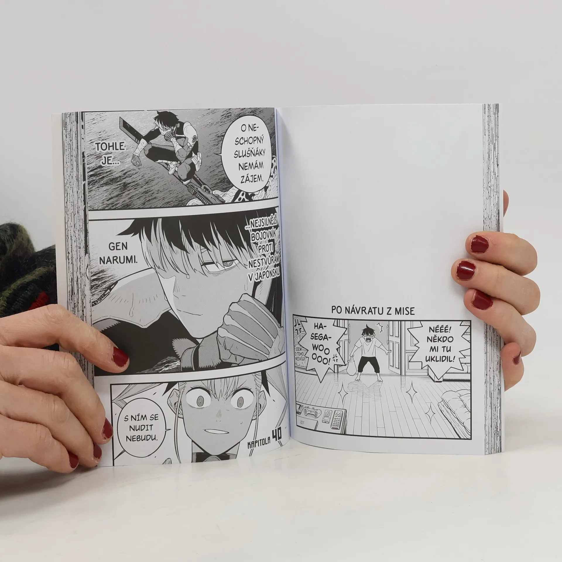 Kafka Hibino byl donucen odhalit svoje tajemství a upadl do zajetí Obranných sil. Ačkoliv trvá na tom, že si zachoval lidskost, je generál Šinomija k jeho argumentům hluchý a přebere Kafkovu likvidaci do vlastních rukou. Muž s pověstí nejmocnějšího bojovníka v dějinách Obranných sil, navíc disponující silou bájné Nestvůry č. 2, je skutečně mocným soupeřem. Zvládne se mu Kafka ubránit, aniž by při tom ztratil kontrolu nad svou nestvůrnou podobou?