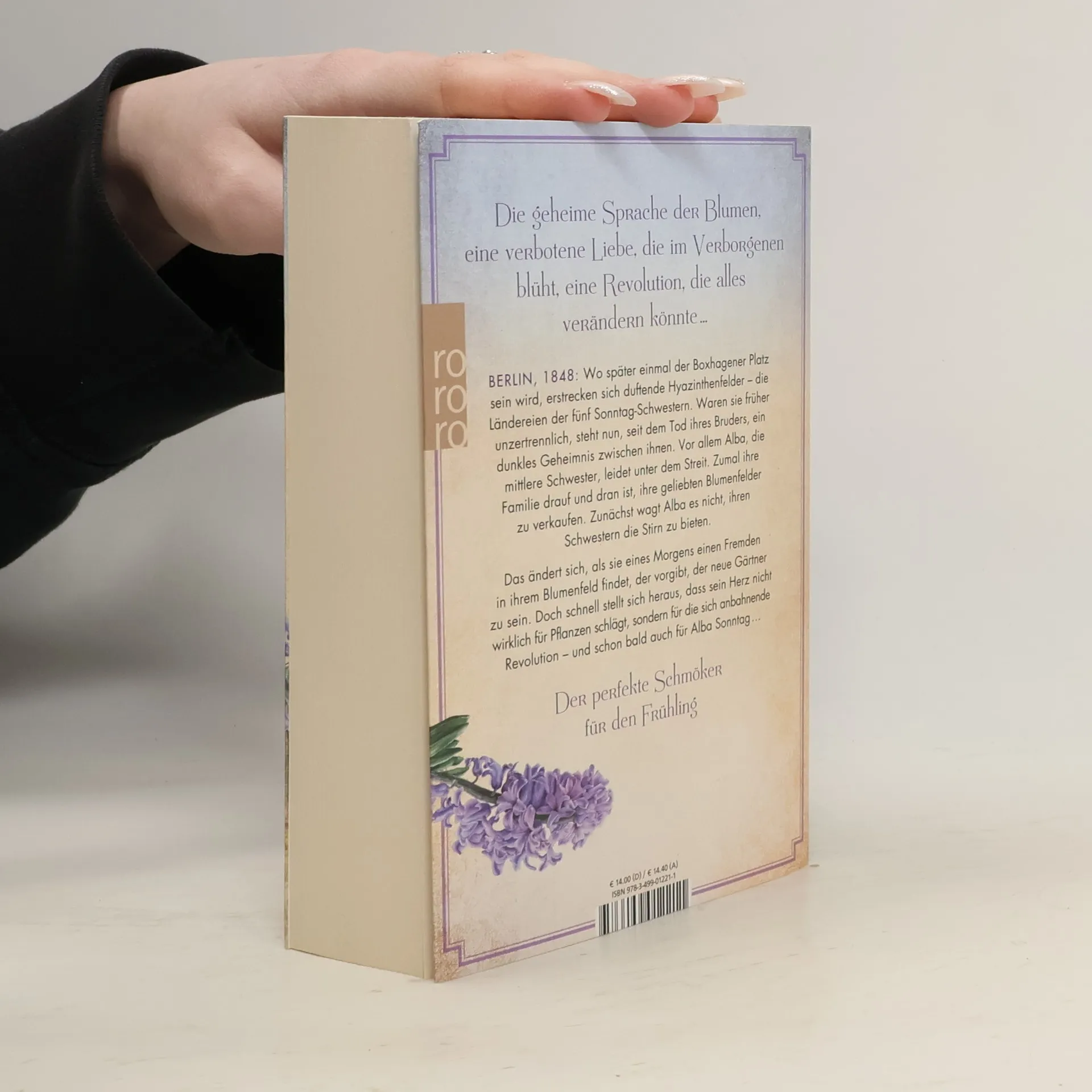 Eine Liebesgeschichte zwischen duftenden Hyazinthenfeldern und den Wirren der Märzrevolution – ein perfekter Schmöker für den Frühling von der Autorin von «Der Duft von Zimt» Berlin, 1848: Wo später einmal der Boxhagener Platz sein wird, erstrecken sich duftende Hyazinthenfelder, so weit das Auge reicht – die Ländereien der fünf Sonntag-Schwestern. Früher waren sie unzertrennlich, doch seit dem Tod ihres Bruders Heinrich steht ein dunkles Geheimnis zwischen ihnen. Vor allem die mittlere Schwester Alba leidet sehr unter dem großen Streit. Zumal ihre Familie drauf und dran ist, die Felder zu verkaufen, die Alba über alles liebt. In der Sprache der Blumen, die ihre Mutter sie gelehrt hat, versucht sie, mit ihren Schwestern Frieden zu schließen und für den Erhalt von Boxhagen zu kämpfen. Bis eines Morgens ein Fremder in ihrem Blumenbeet liegt, der vorgibt, der neue Gärtner zu sein. Hals über Kopf verliebt sie sich in ihn, ohne zu ahnen, dass in seiner Brust das Herz eines Revolutionärs schlägt, der bereits den Aufstand plant. Ihre Liebe verändert Albas Blick auf die Welt, sodass sie nicht nur Mut fasst, für eine bessere Zukunft zu kämpfen, sondern auch, sich der düsteren Vergangenheit ihrer Familie zu stellen.
