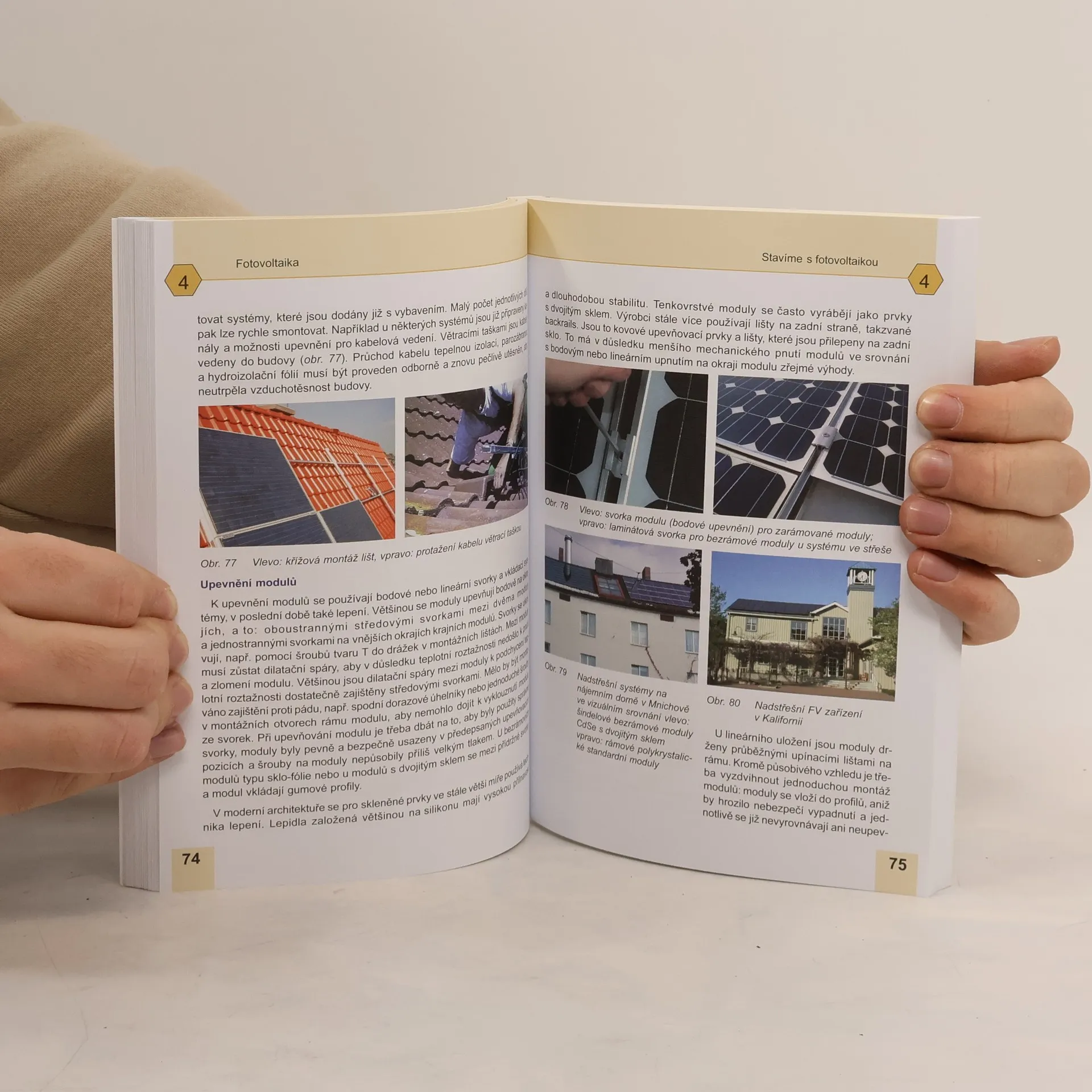 Kniha je zaměřena na návrh, stavbu, provoz a přínosy fotovoltaických zdrojů elektrické energie instalovaných především na budovách. Přitom vychází z nejnovějších poznatků tohoto rychle se vyvíjejícího se oboru, takže tím přesně naplňuje současnou potřebu realizace investičně a prostorově úsporných a k životnímu prostředí šetrných zařízení tohoto druhu. Rozebírá a vyhodnocuje různé varianty realizace s jejich přednostmi i nedostatky a tím může posloužit k nejoptimálnějšímu řešení pro konkrétní podmínky. Rovněž přináší mnoho rad a doporučení pro jednotlivé profese podílející se na realizaci a provozu těchto zařízení a na několika příkladech ukazuje ekonomiku provozu. Nepomíjí ani legislativu. Obsahuje obsažné odkazy na další informační zdroje.