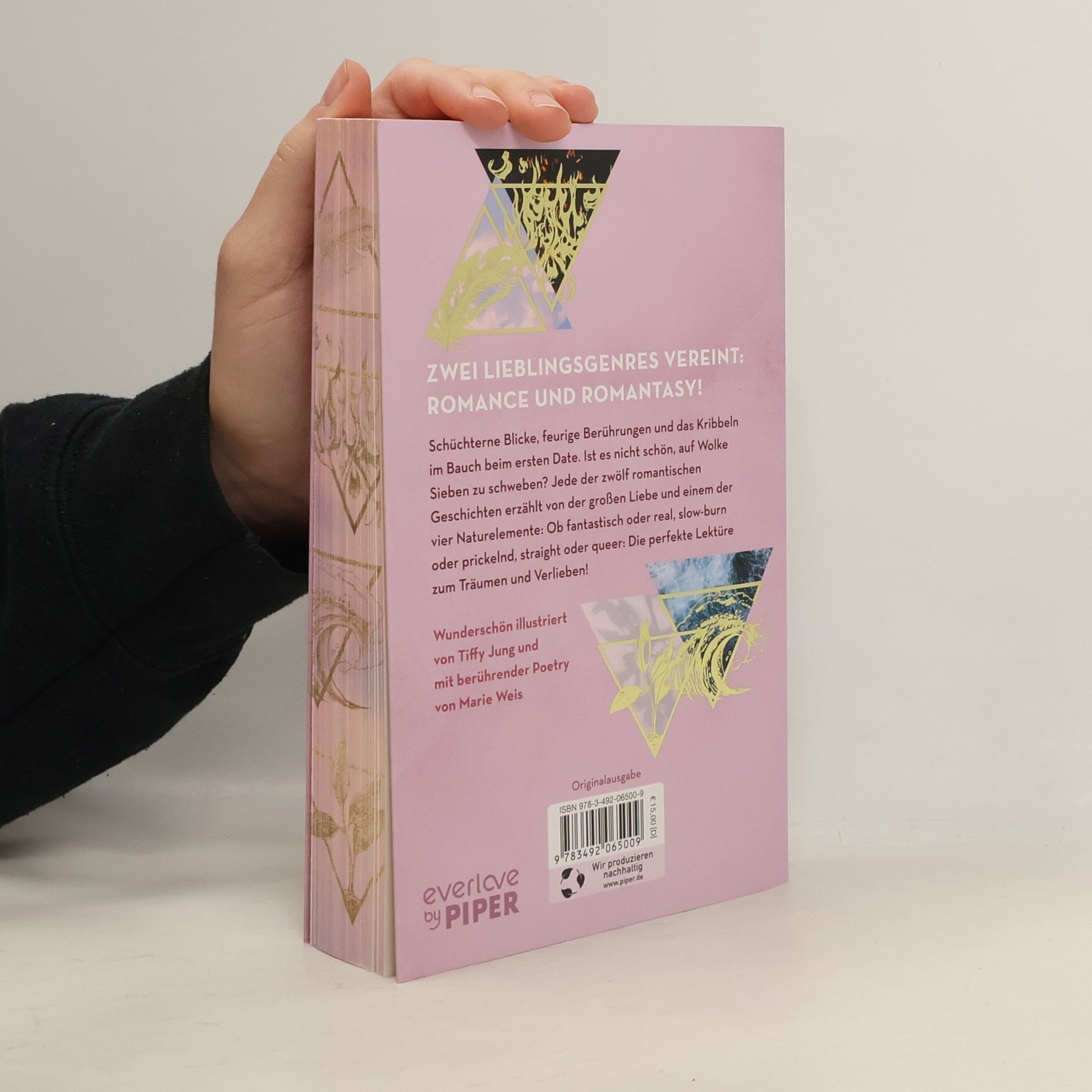 Liebe in allen Farben und ElementenSchüchterne Blicke, feurige Berührungen und das Kribbeln im Bauch beim ersten Date. Ist es nicht schön, auf Wolke Sieben zu schweben? Jede der zwölf romantischen Geschichten erzählt von der großen Liebe und einem der vier Naturelemente. Wunderschön illustriert und veredelt ist die Anthologie ein Muss für alle New-Adult Leser:innen. Fantastisch oder real, slow-burn oder prickelnd, straight oder queer: Die perfekte Lektüre zum Träumen und Verlieben im sommerlichen Garten, auf dem Balkon oder am Meer.