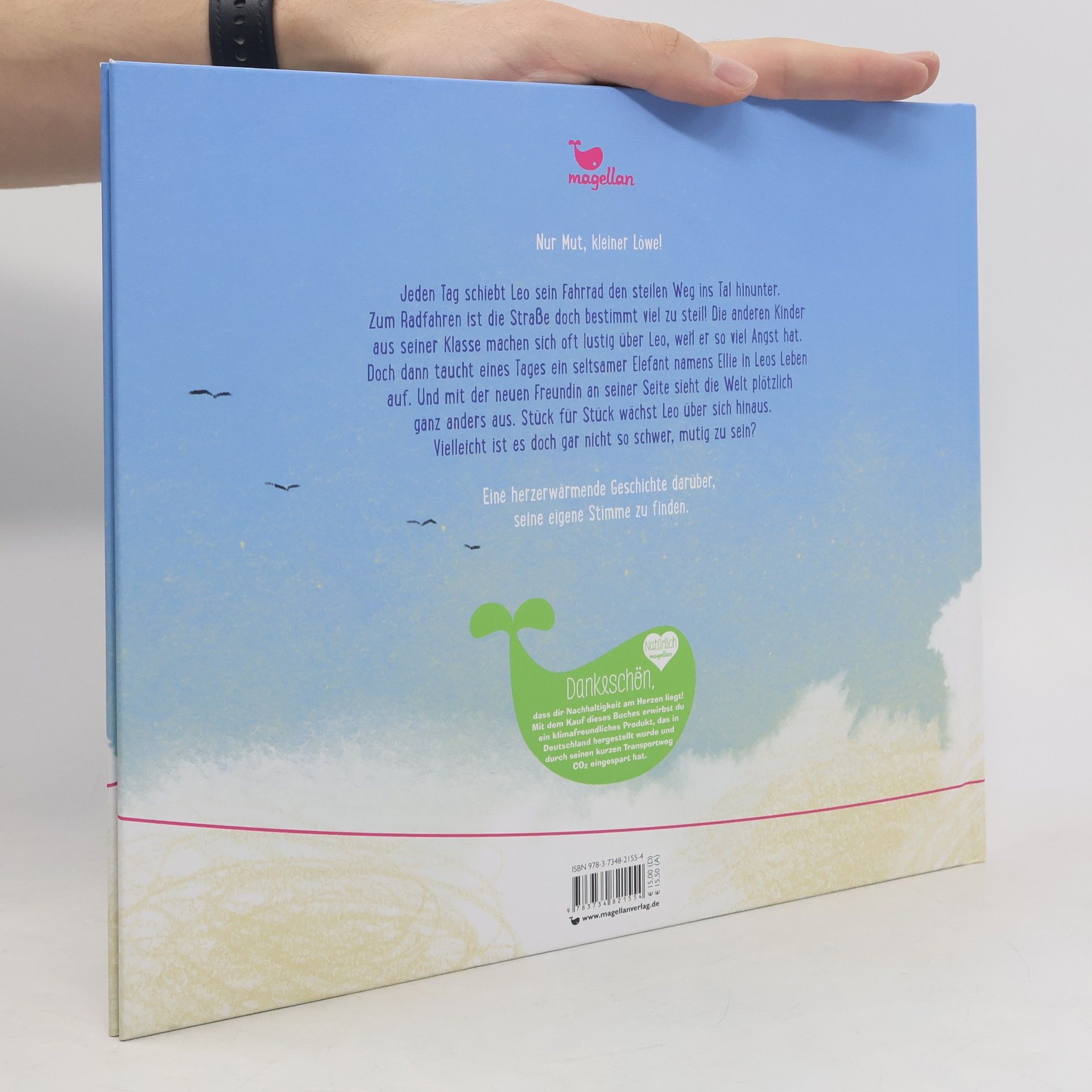 Eine herzerwärmende Vorlesegeschichte, die Mut macht, für sich selbst einzustehen. Jeden Tag schiebt Leo sein Fahrrad den steilen Weg ins Tal hinunter. Zum Radfahren ist die Straße doch bestimmt viel zu steil! Die anderen Kinder aus seiner Klasse machen sich oft lustig über Leo, weil er so viel Angst hat. Doch dann taucht eines Tages ein seltsamer Elefant namens Ellie in Leos Leben auf. Und mit der neuen Freundin an seiner Seite sieht die Welt plötzlich ganz anders aus. Stück für Stück wächst Leo über sich hinaus. Vielleicht ist es doch garnicht so schwer, mutig zu sein?