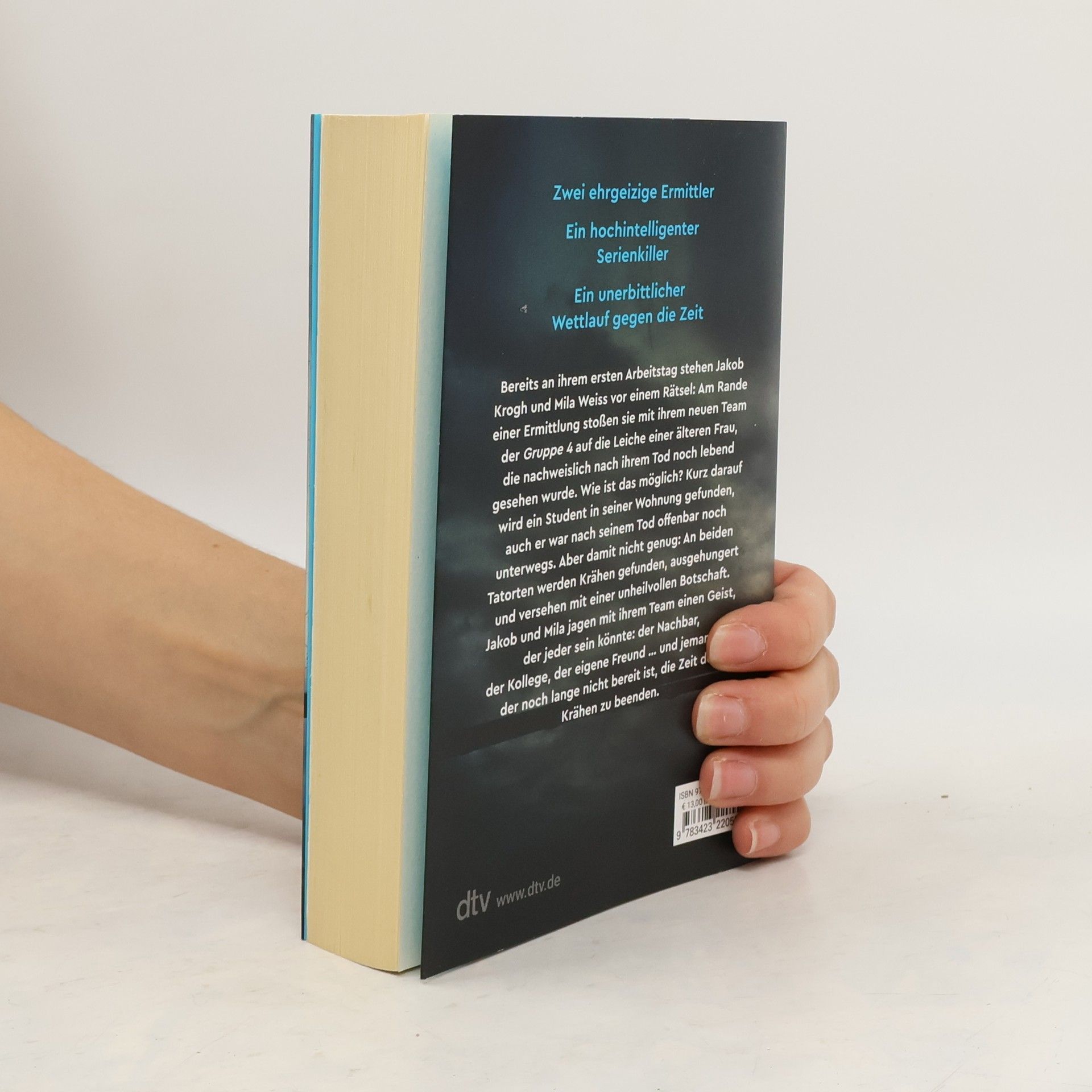 Er spielt die Rolle deines Lebens Zwei ehrgeizige Ermittler, ein hochintelligenter Serienkiller – ein unerbittlicher Wettkampf gegen die Zeit. Bereits am ersten Arbeitstag steht das Ermittlerduo Jakob Krogh und Mila Weiss vor einem Rätsel. Am Rande einer Ermittlung stoßen sie auf die Leiche einer älteren Frau, die nachweislich nach ihrem Tod noch lebend gesehen wurde. Wie ist das möglich? Kurz darauf wird ein junger Student in seiner Wohnung gefunden, auch er war nach seinem Tod offenbar noch an der Uni. Aber damit nicht genug: An beiden Tatorten werden Krähen gefunden, ausgehungert und versehen mit einer unheilvollen Botschaft. Jakob und Mila jagen mit dem Team der neuen Gruppe 4 einen Geist, der jeder sein könnte: der Nachbar, der Kollege, der eigene Freund … und jemanden, der noch lange nicht bereit ist, die Zeit der Krähen zu beenden. Benjamin Cors begibt sich auf neues Terrain: Härter, blutiger, spannender – ein atemberaubender Thriller des Bestseller-Autors