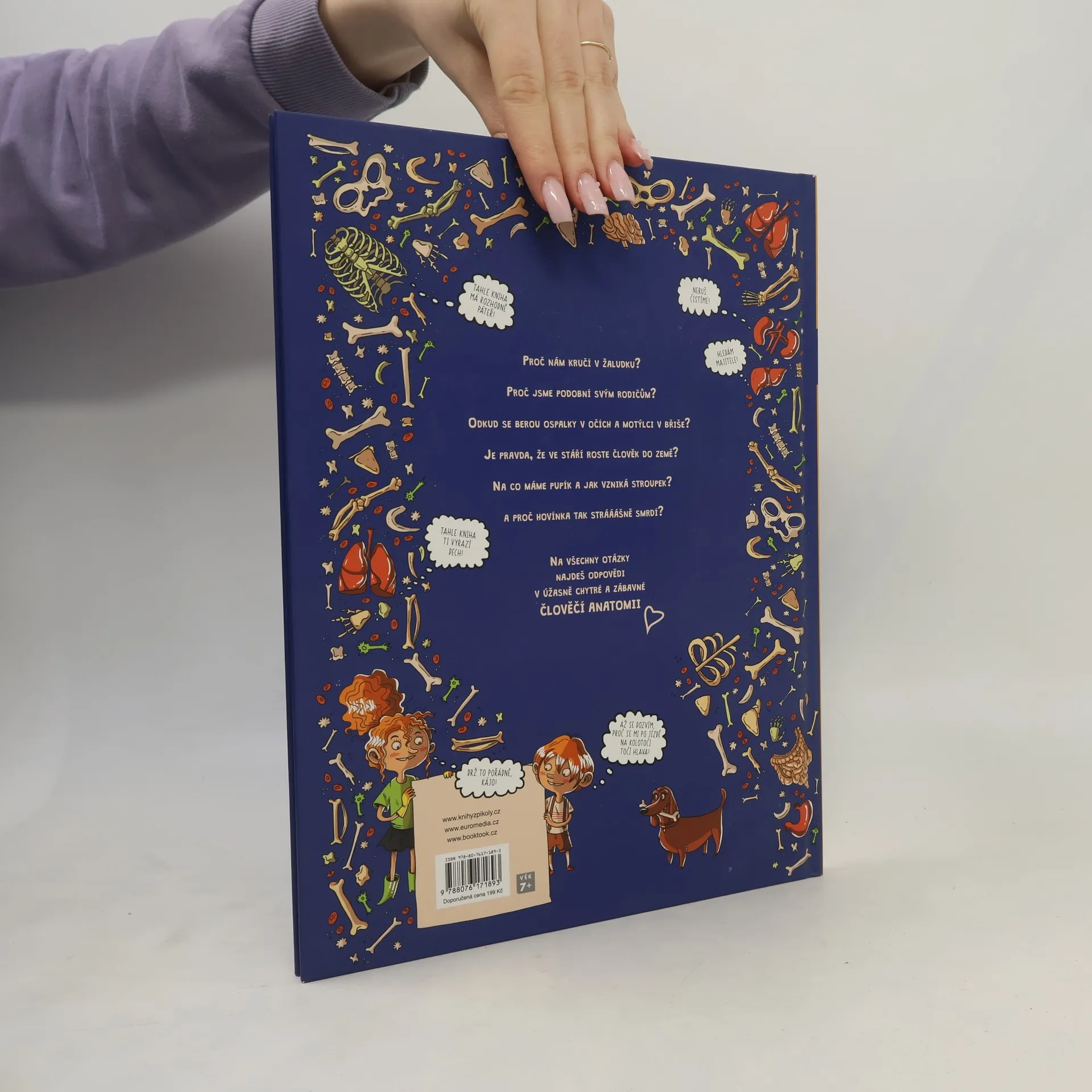 Proč nám kručí v žaludku? Proč jsme podobní svým rodičům? Odkud se berou ospalky v očích a motýlci v břiše? Je pravda,že ve stáří roste člověk do země? Na co máme pupík a jak vzniká stroupek? A proč hovínka tak strááášně smrdí? Na všechny otázky najdeš odpovědi v úžasně chytré a zábavné člověčí anatomii.